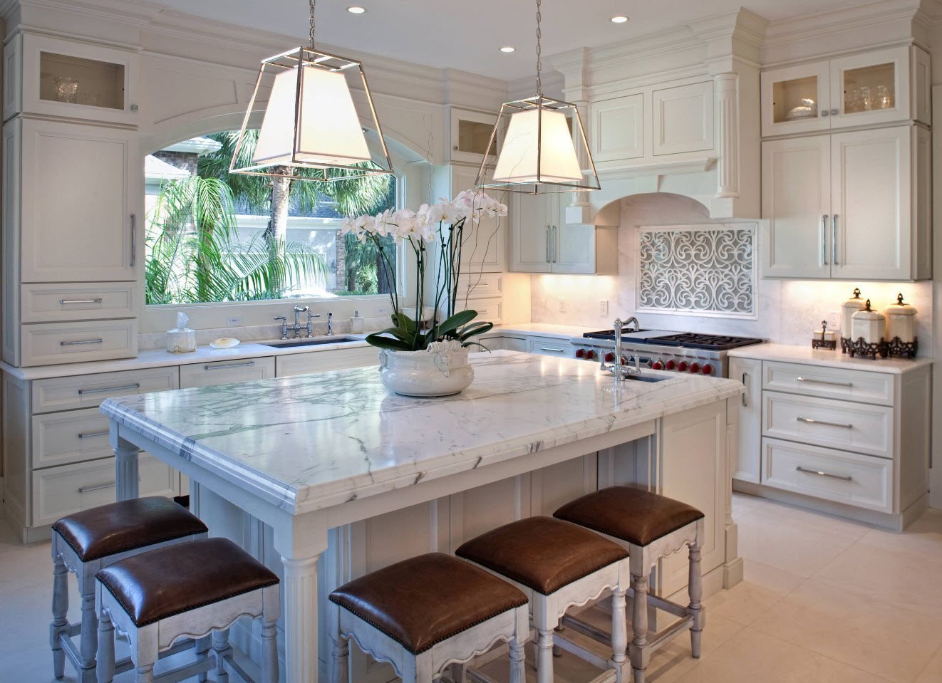 Кухня с островком-обеденной зоной в классическом стиле