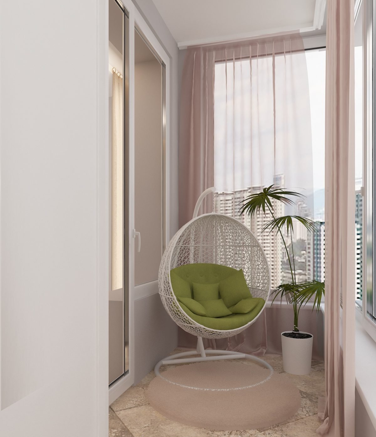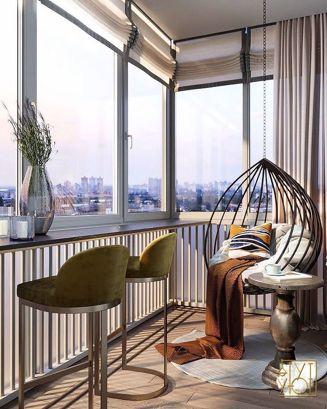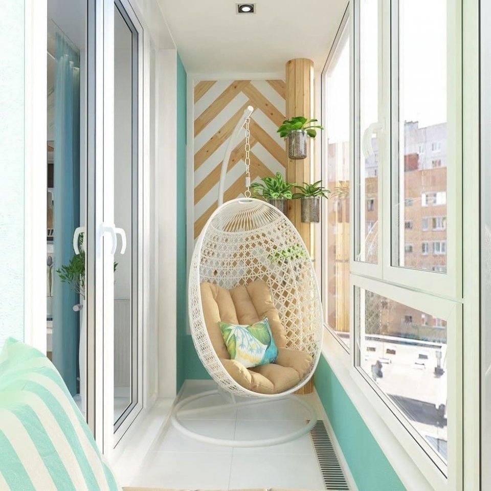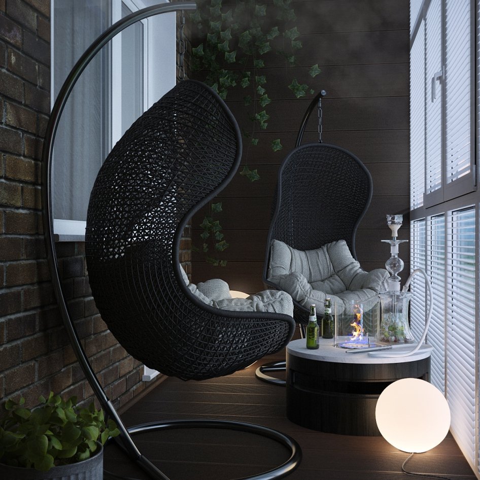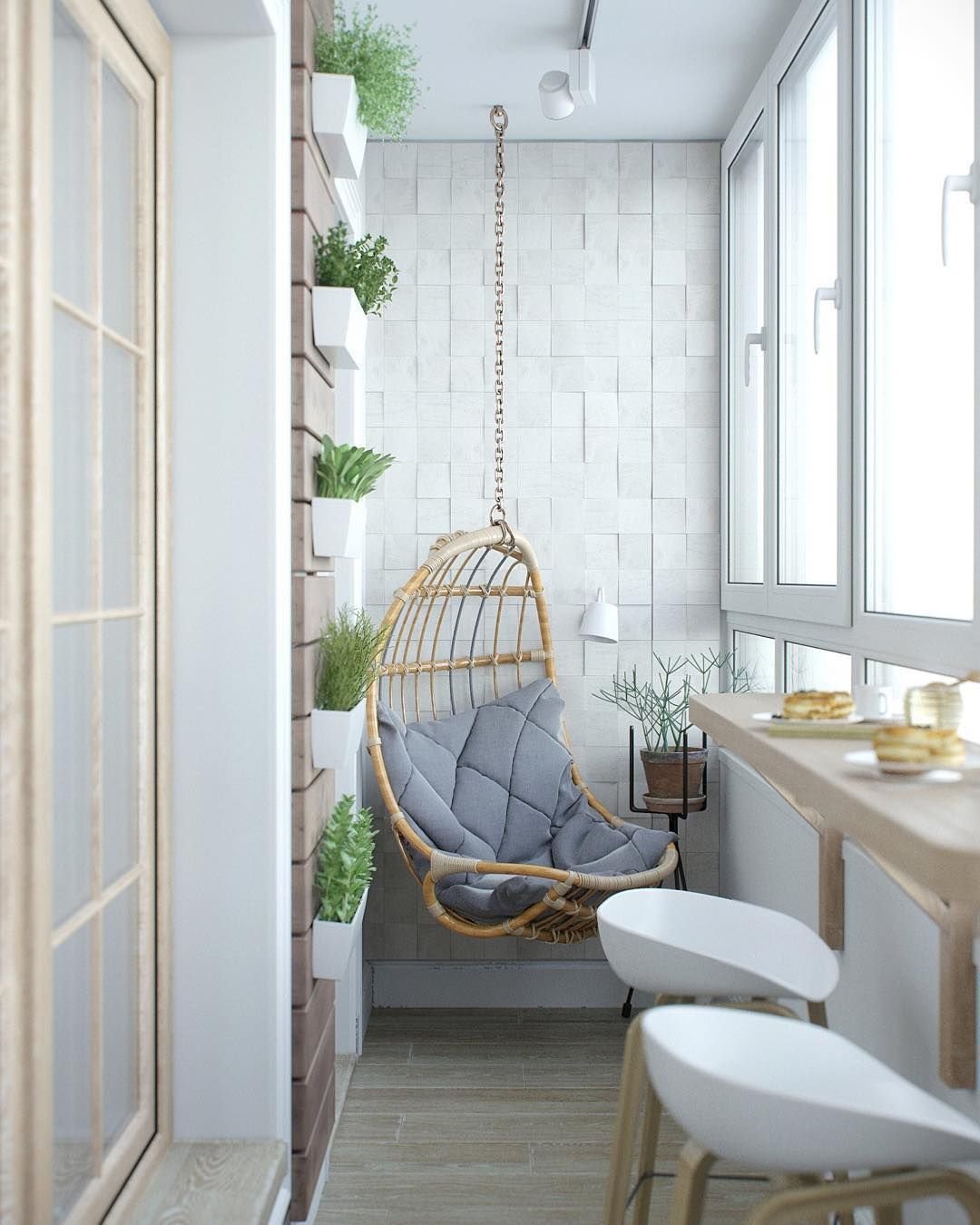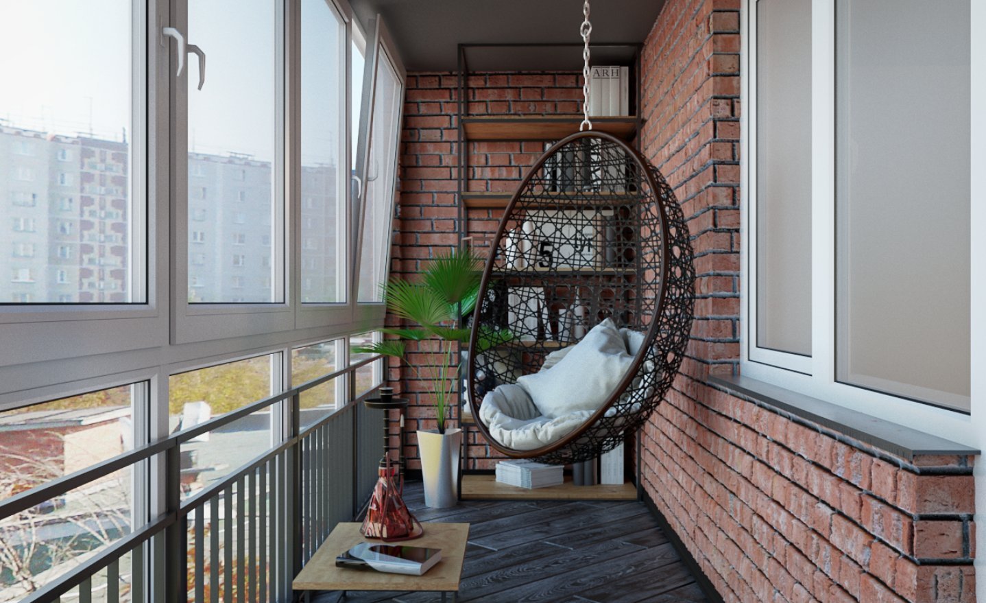 Дизайн лоджии 11 квадратов с плетеной мебелью