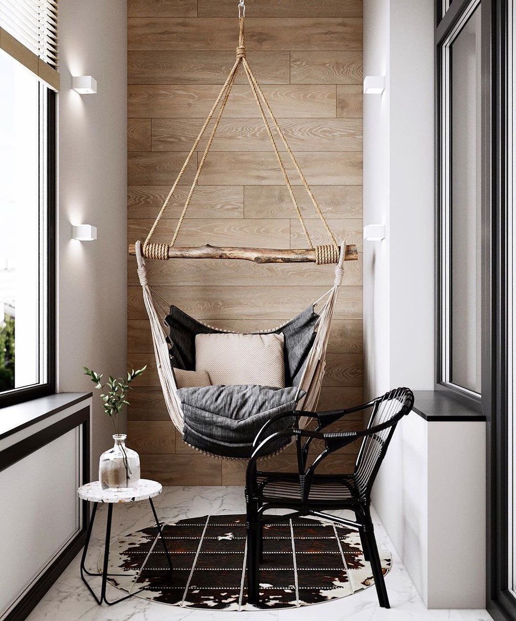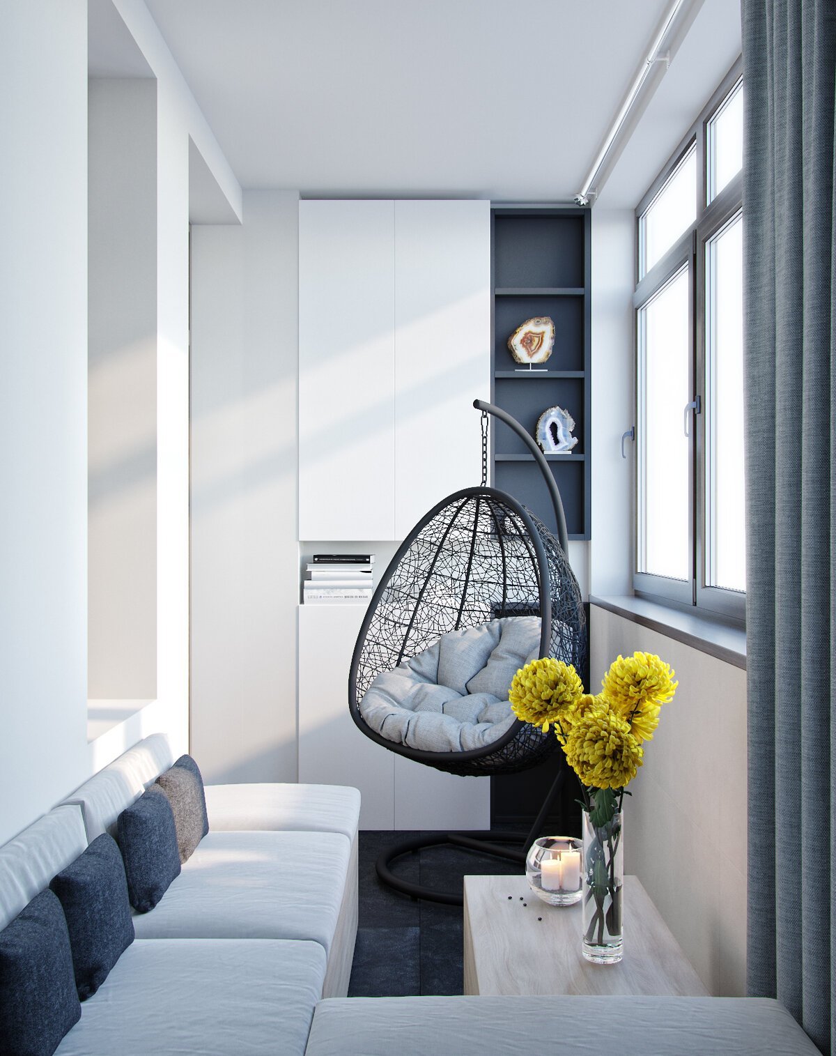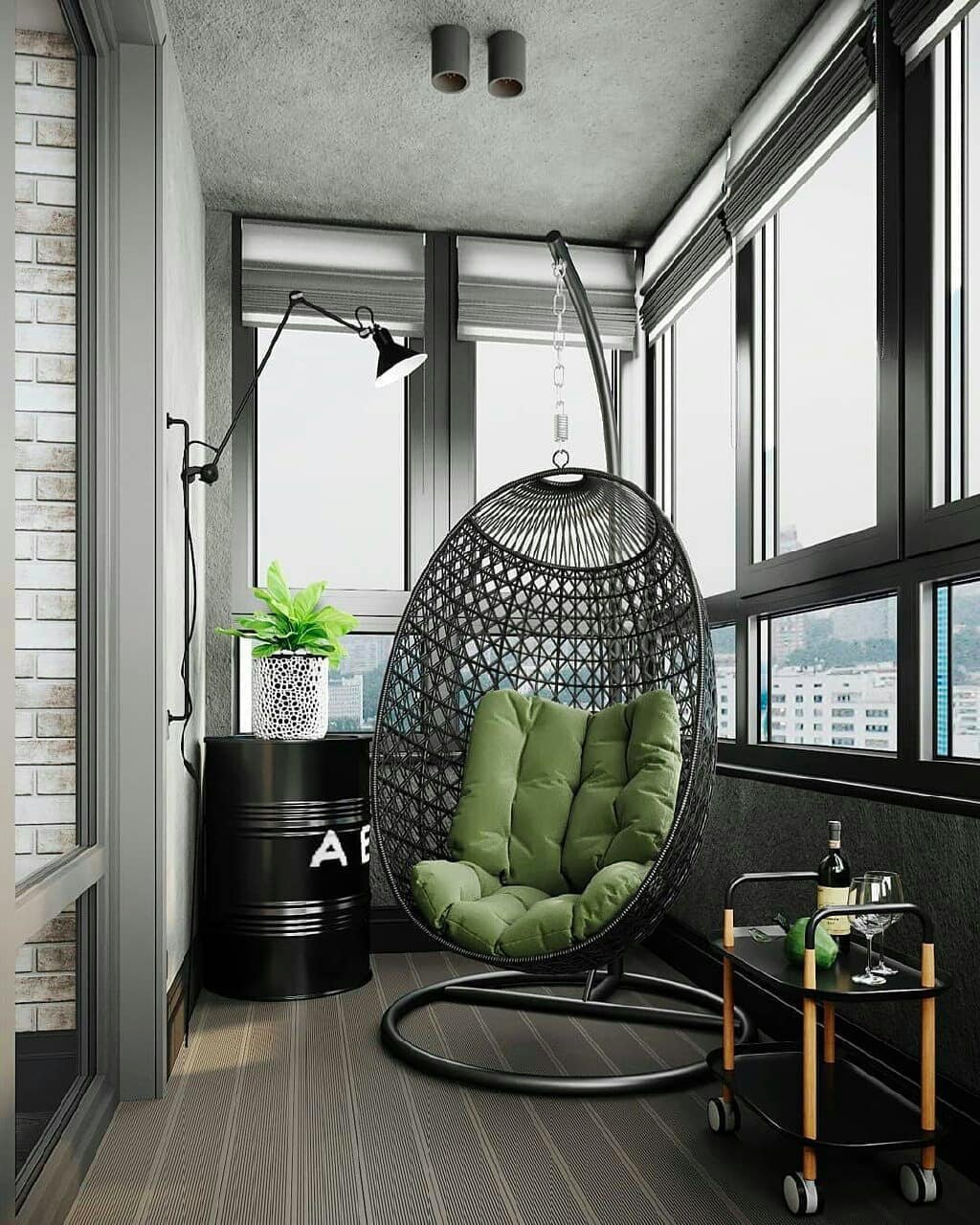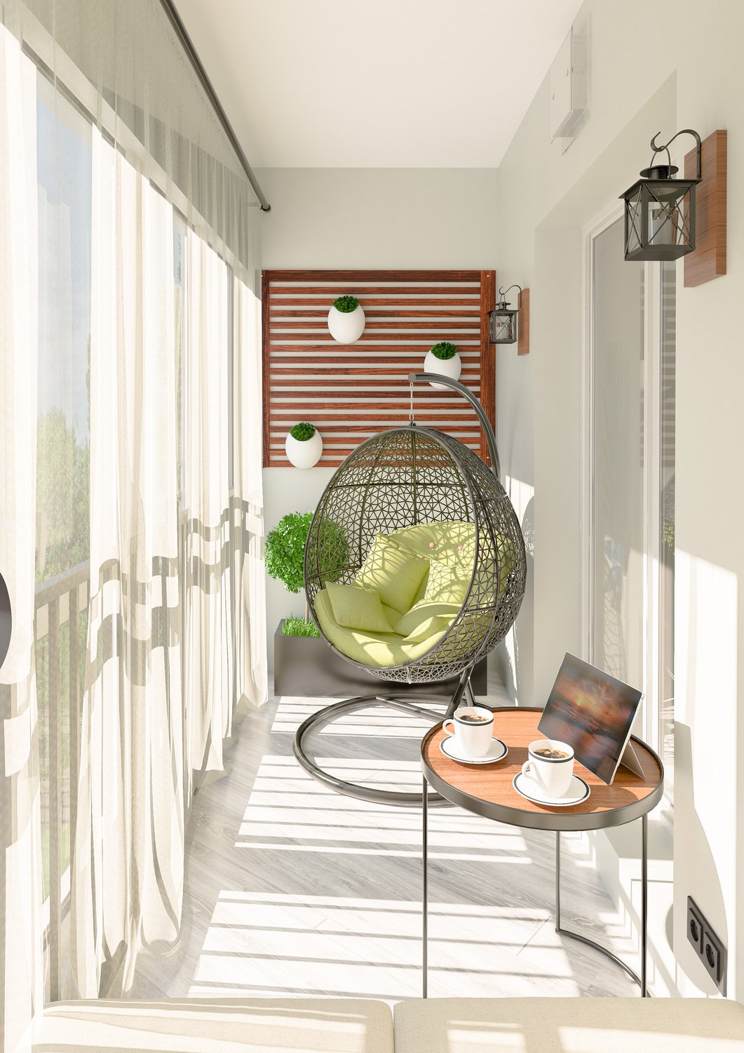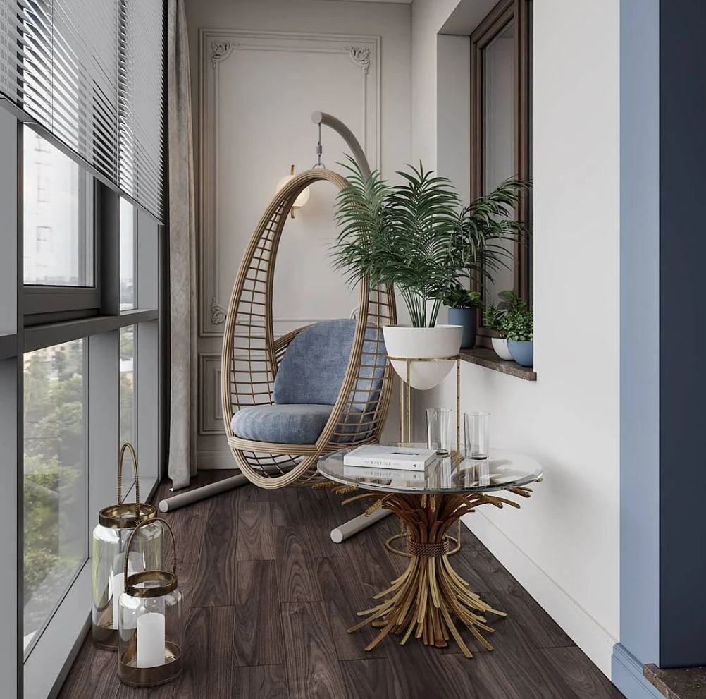 Дизайн лоджии 11 квадратов с плетеной мебелью