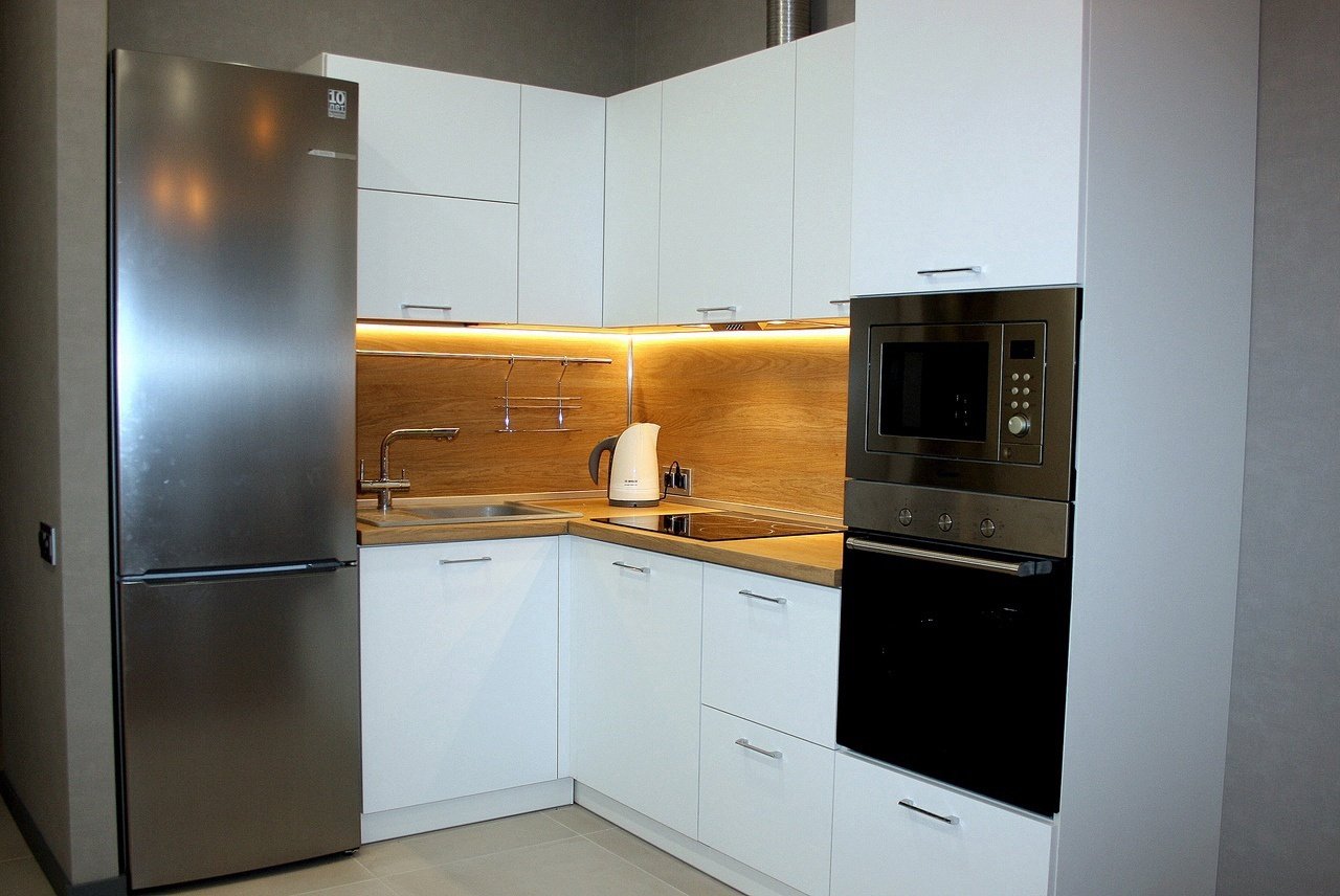 Кухня с белой бытовой техникой