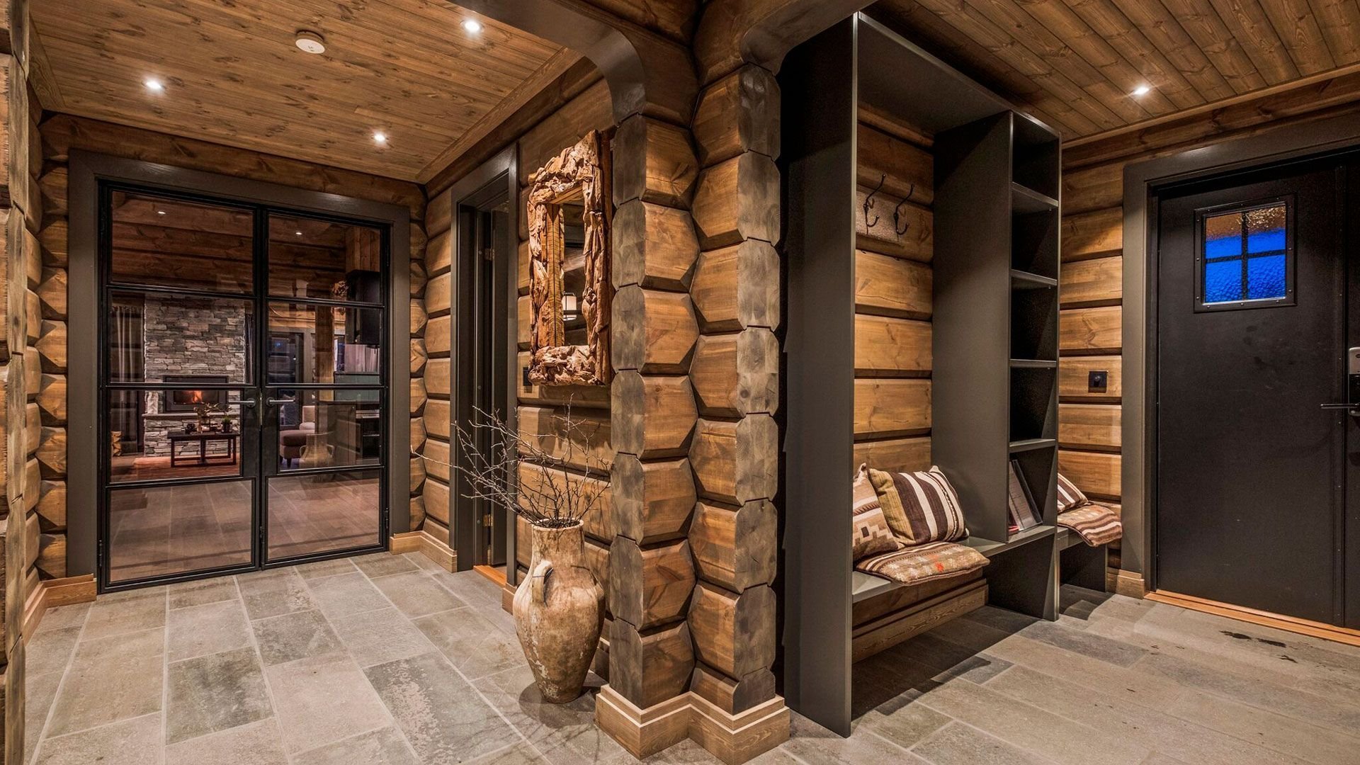 Декор прихожей в деревянном доме