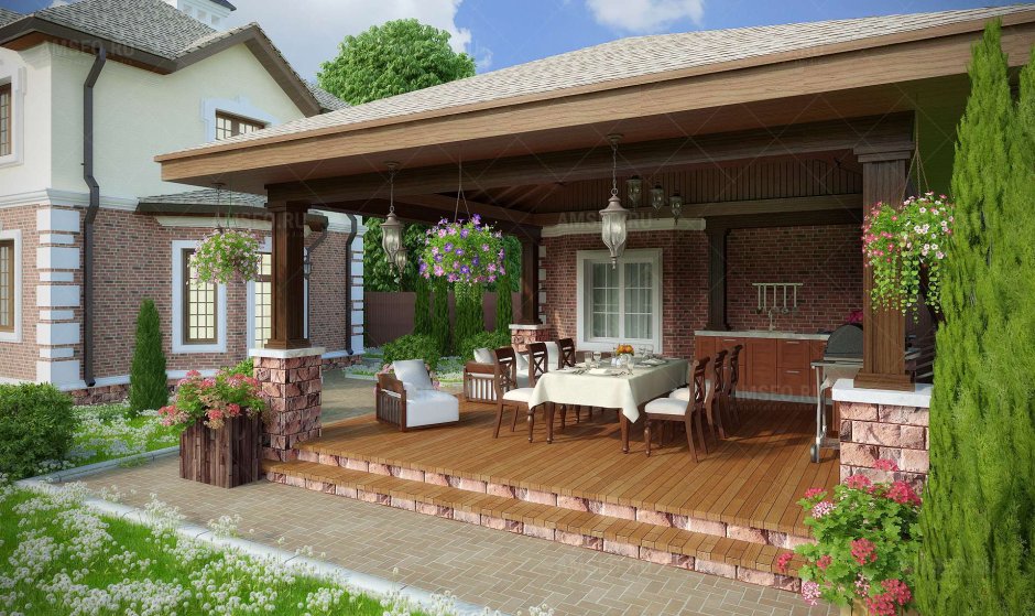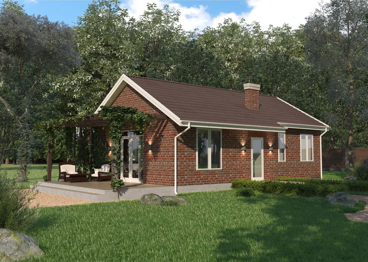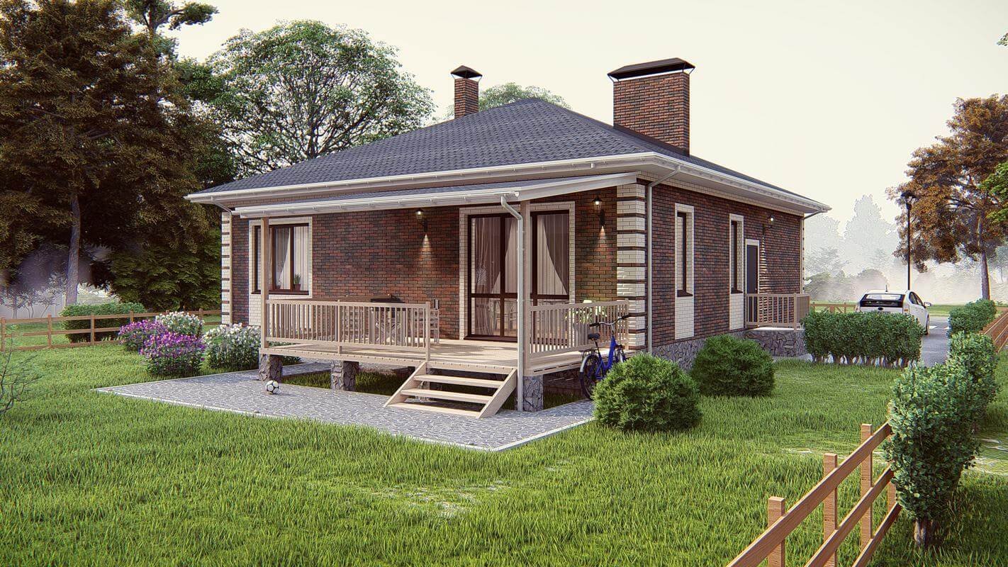 Одноэтажный кирпичный дом 80 кв.м с террасой