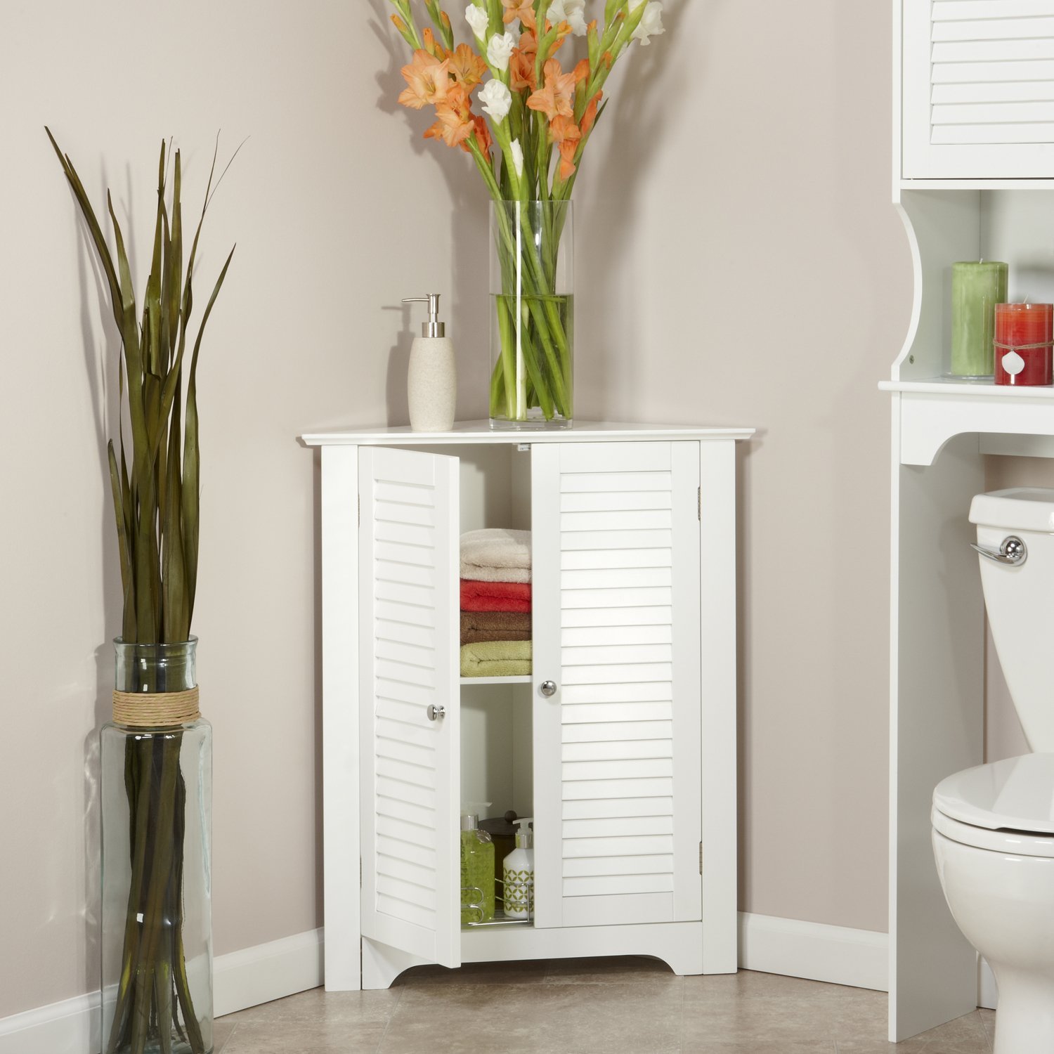 Угловые шкафчики для ванной комнаты