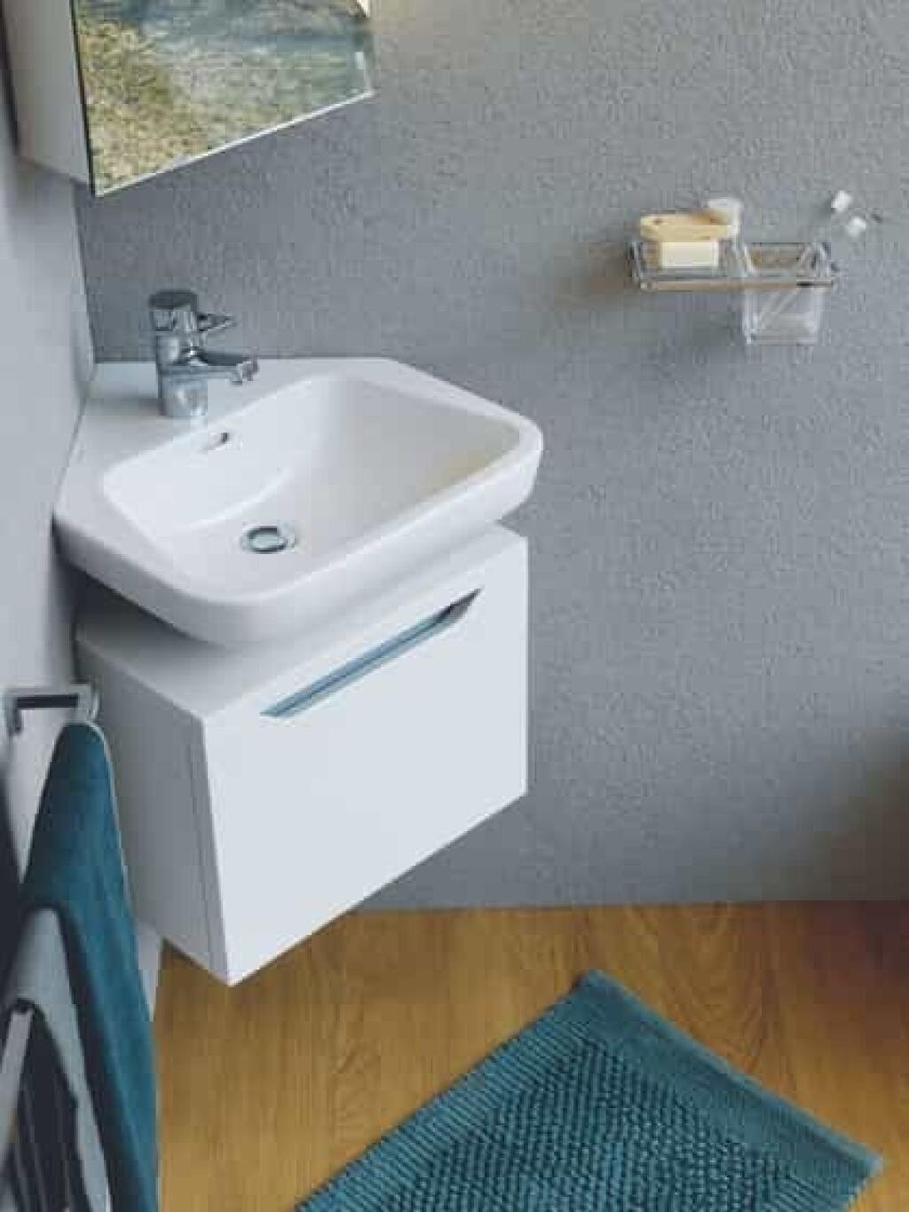Угловая раковина с тумбой в ванную комнату