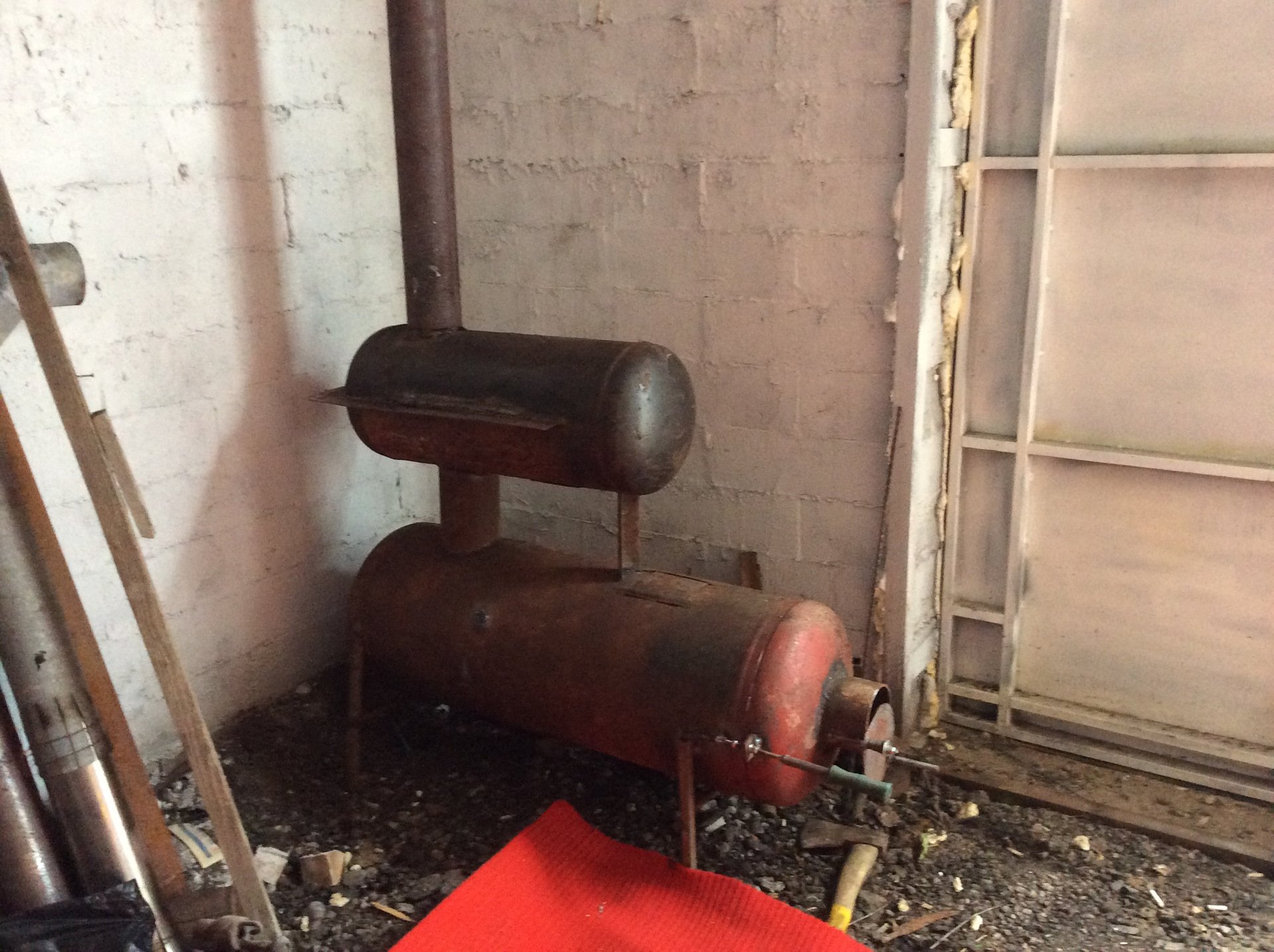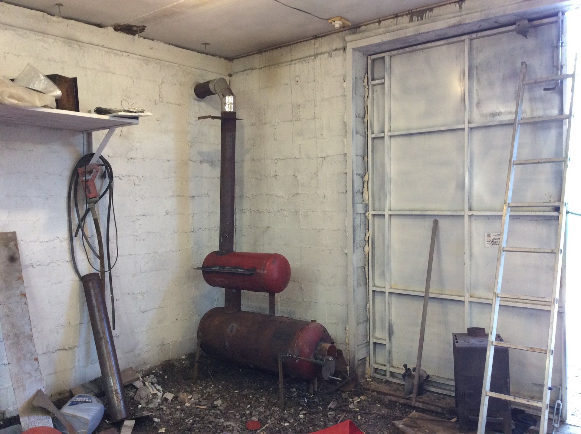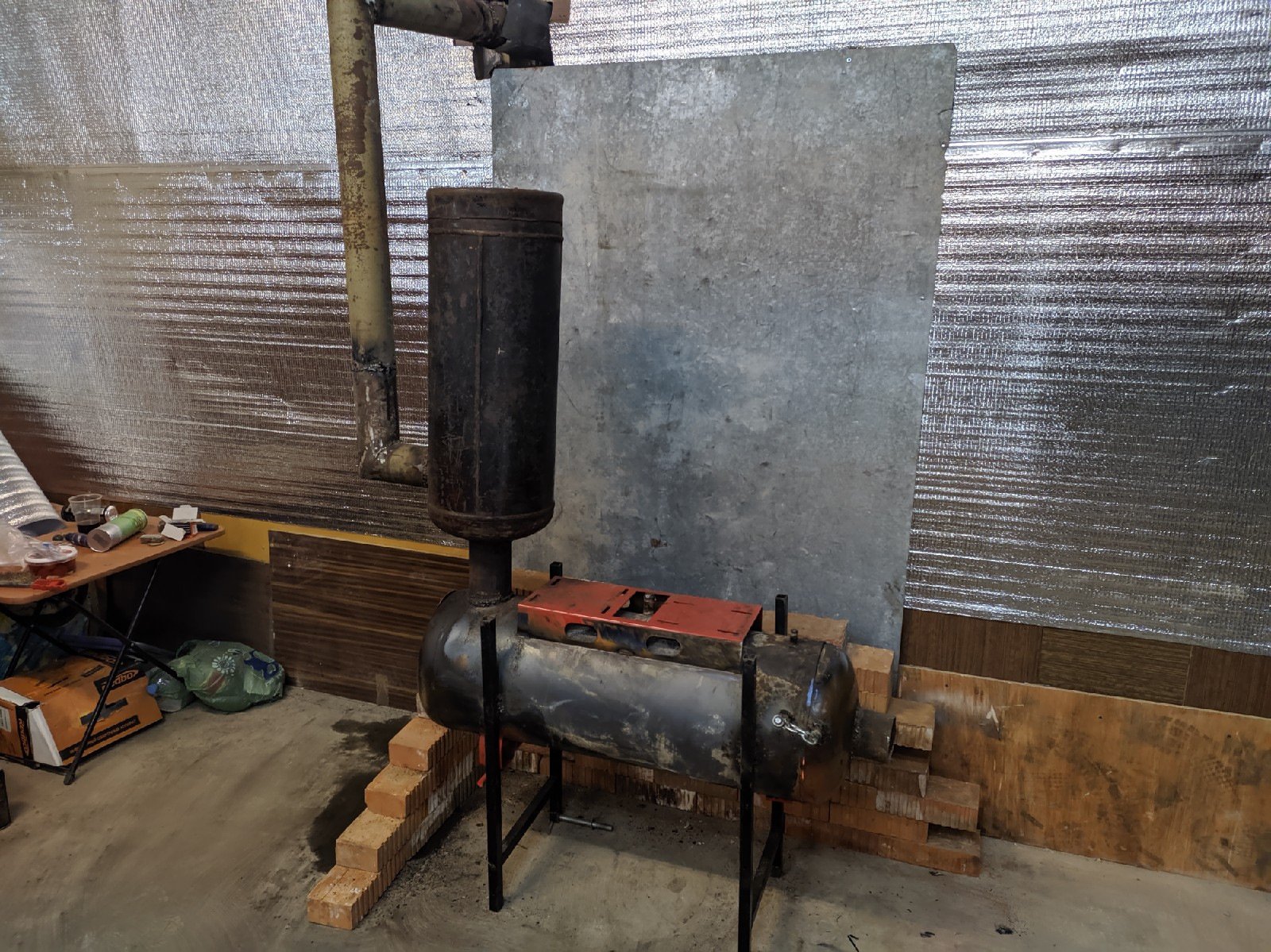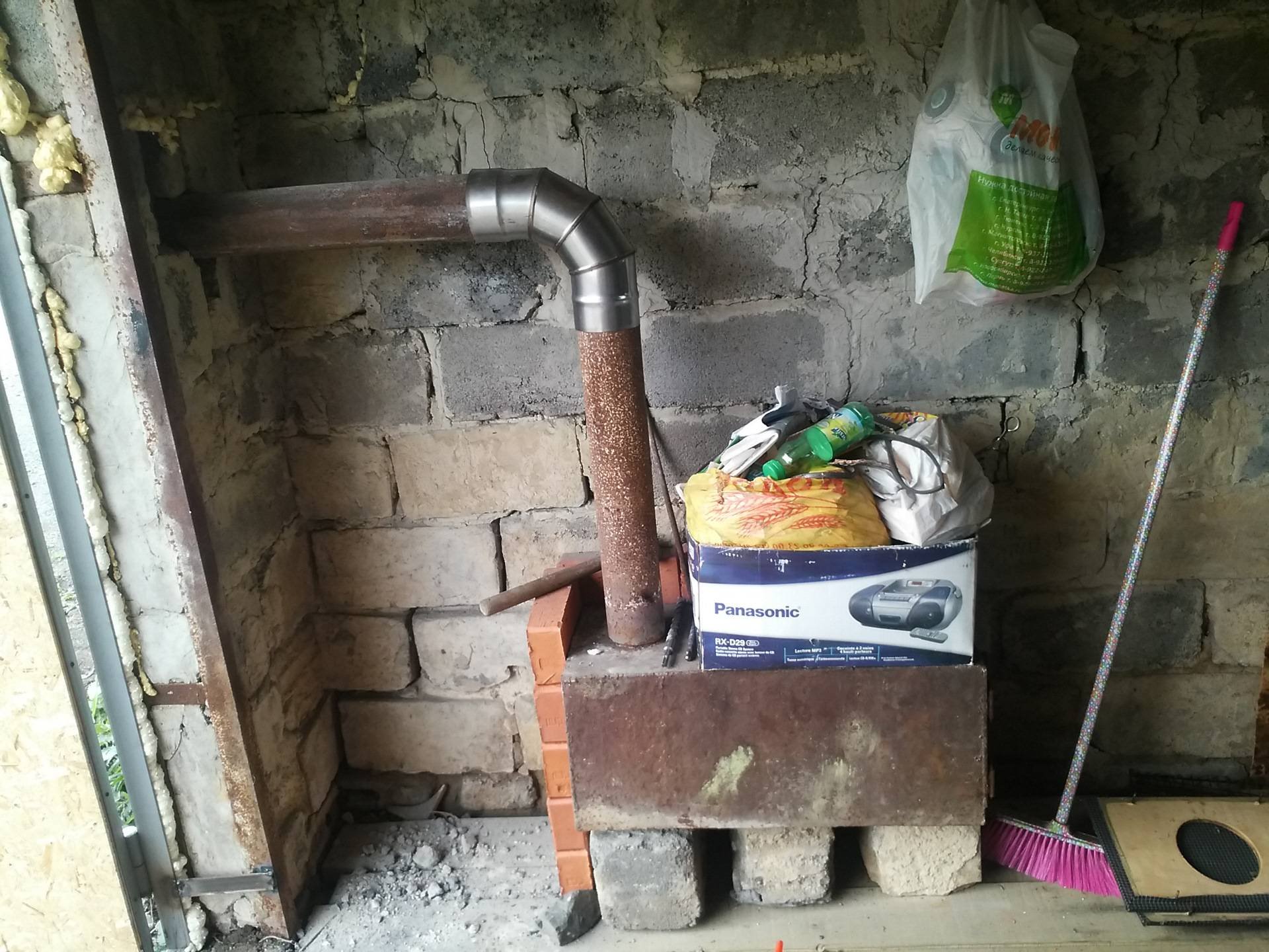 Буржуйка с мангалом в гараже