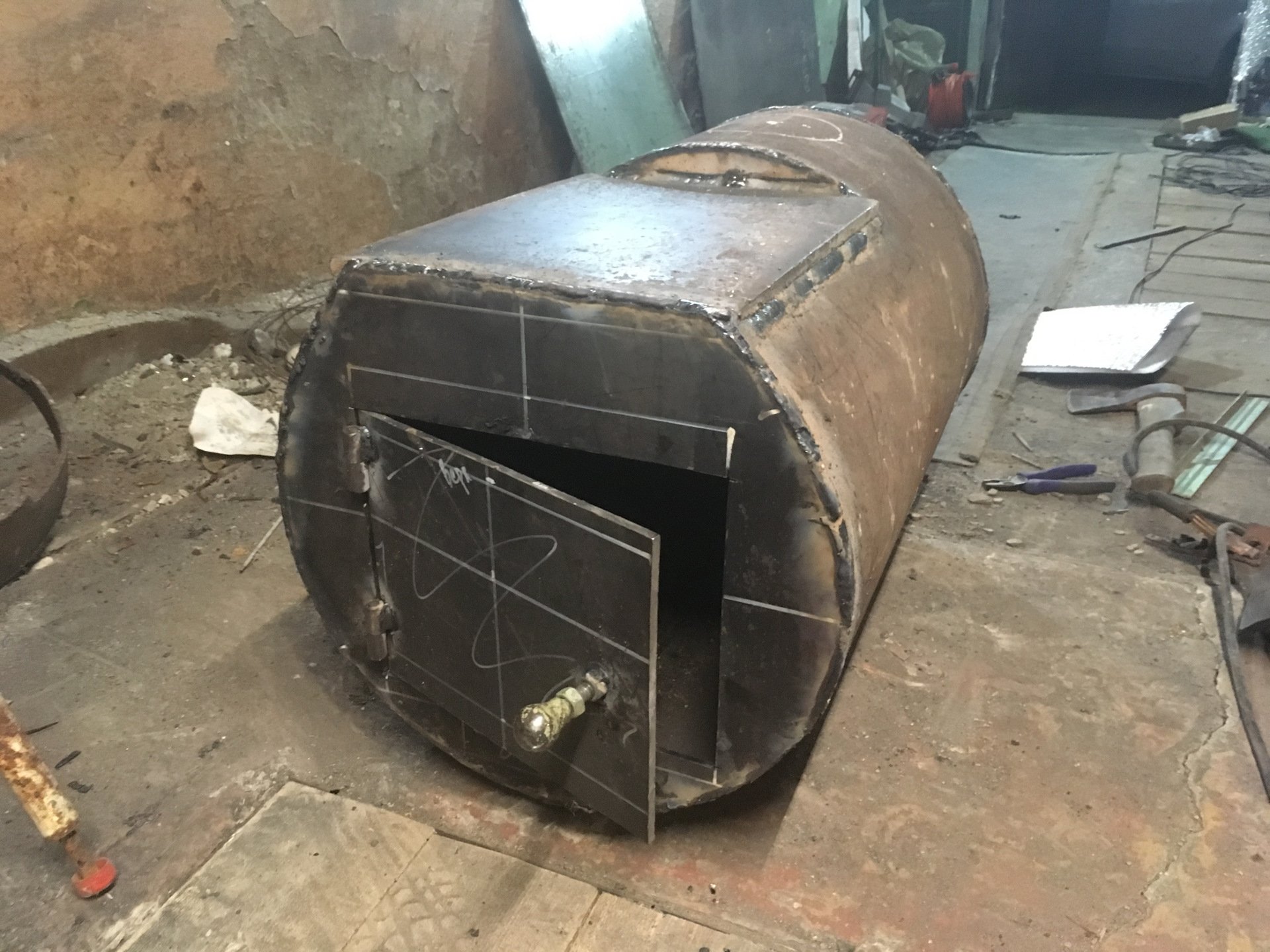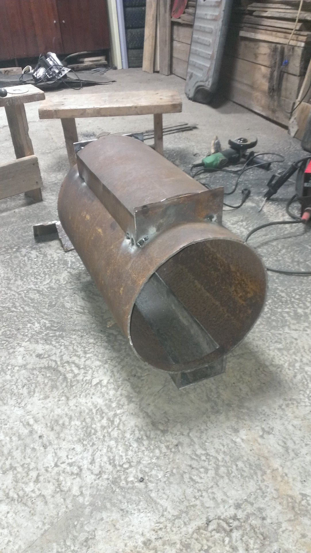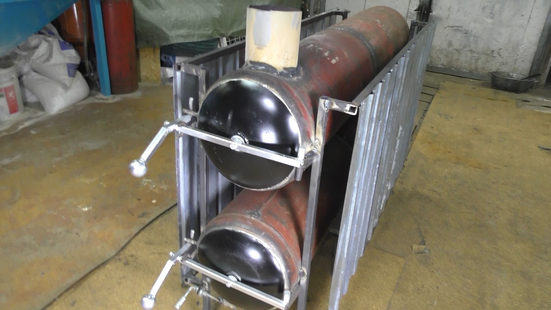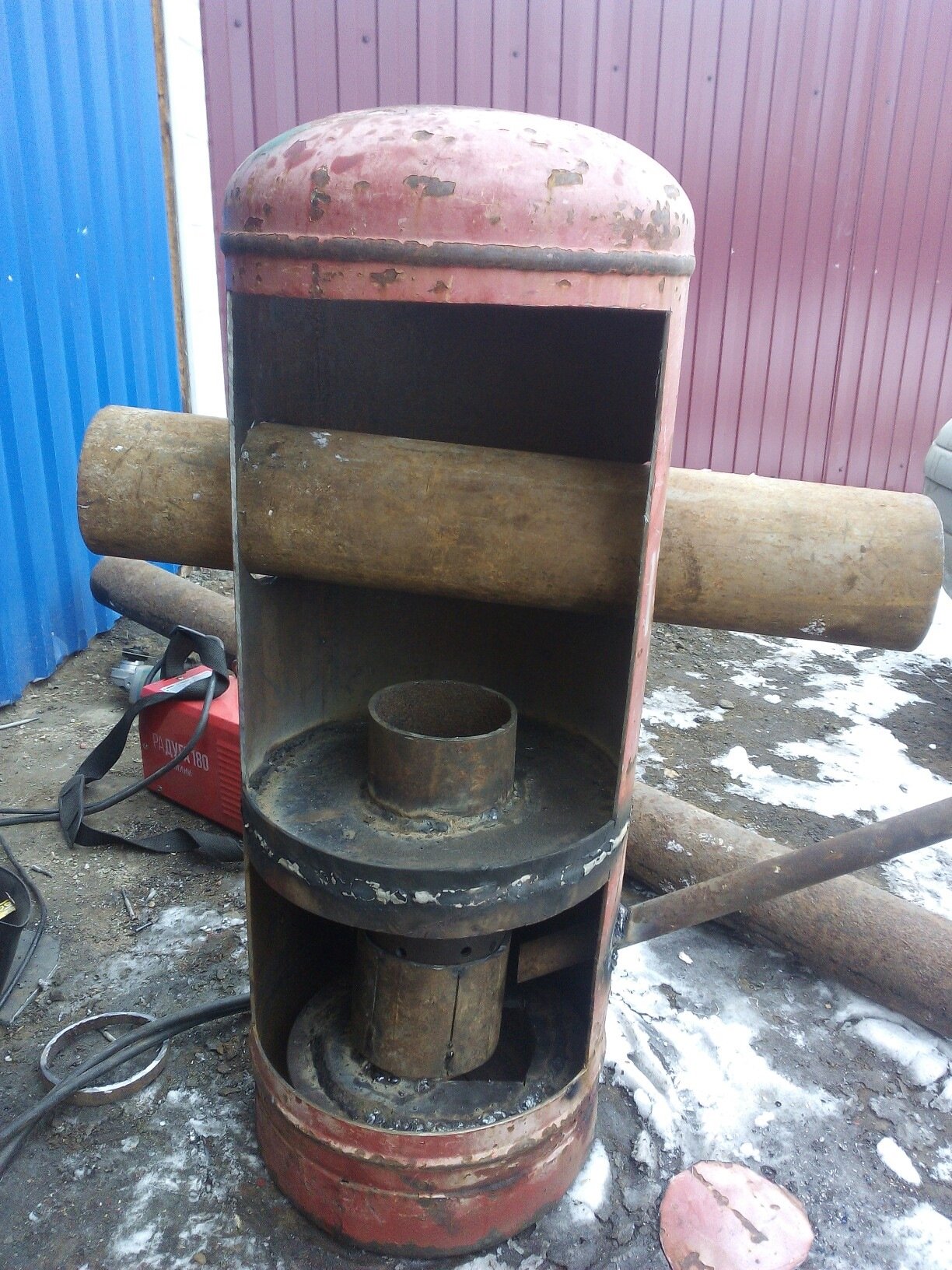Печка для гаража на дровах из трубы ду400