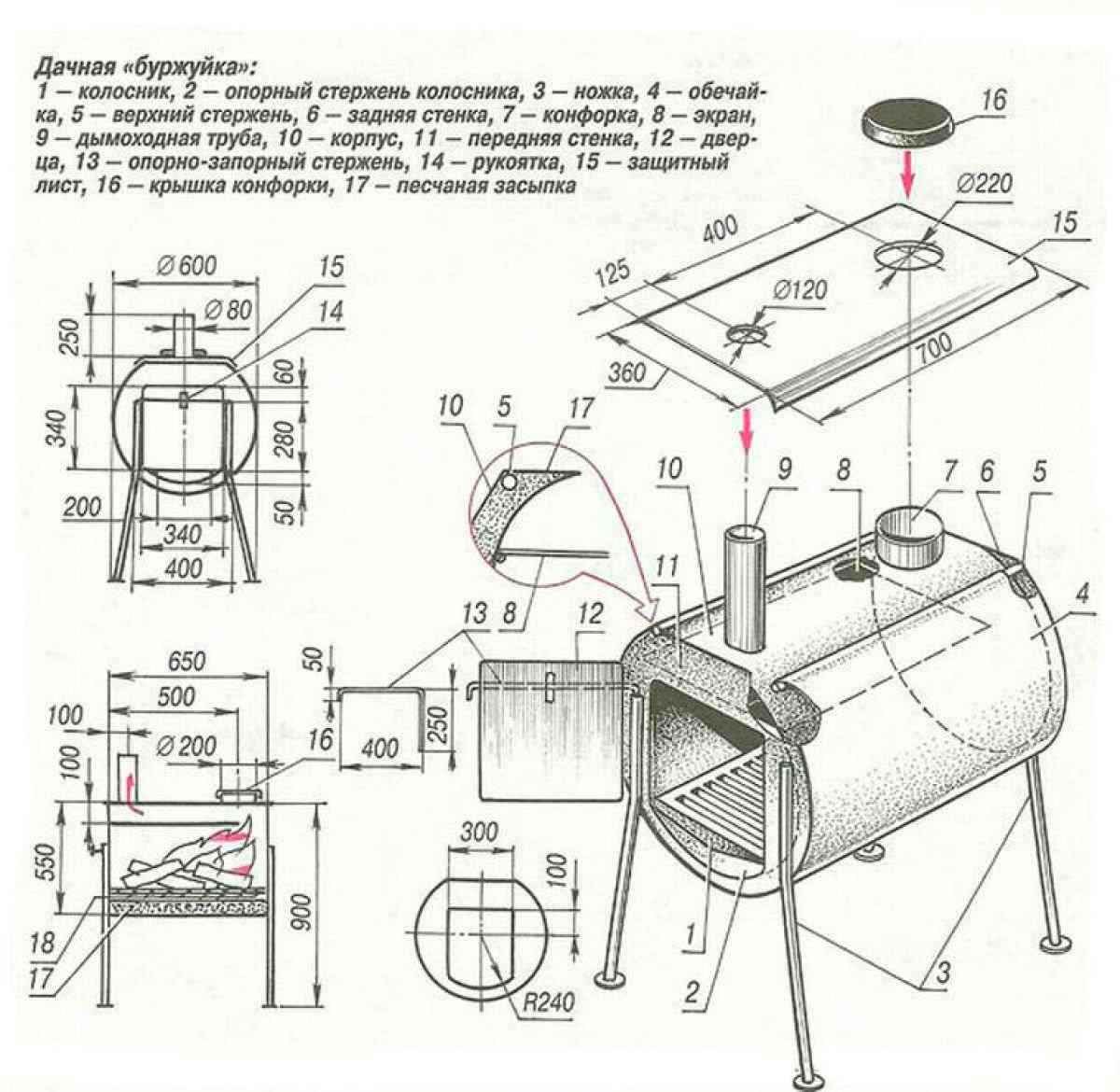 Чертежи печи буржуйки длительного горения