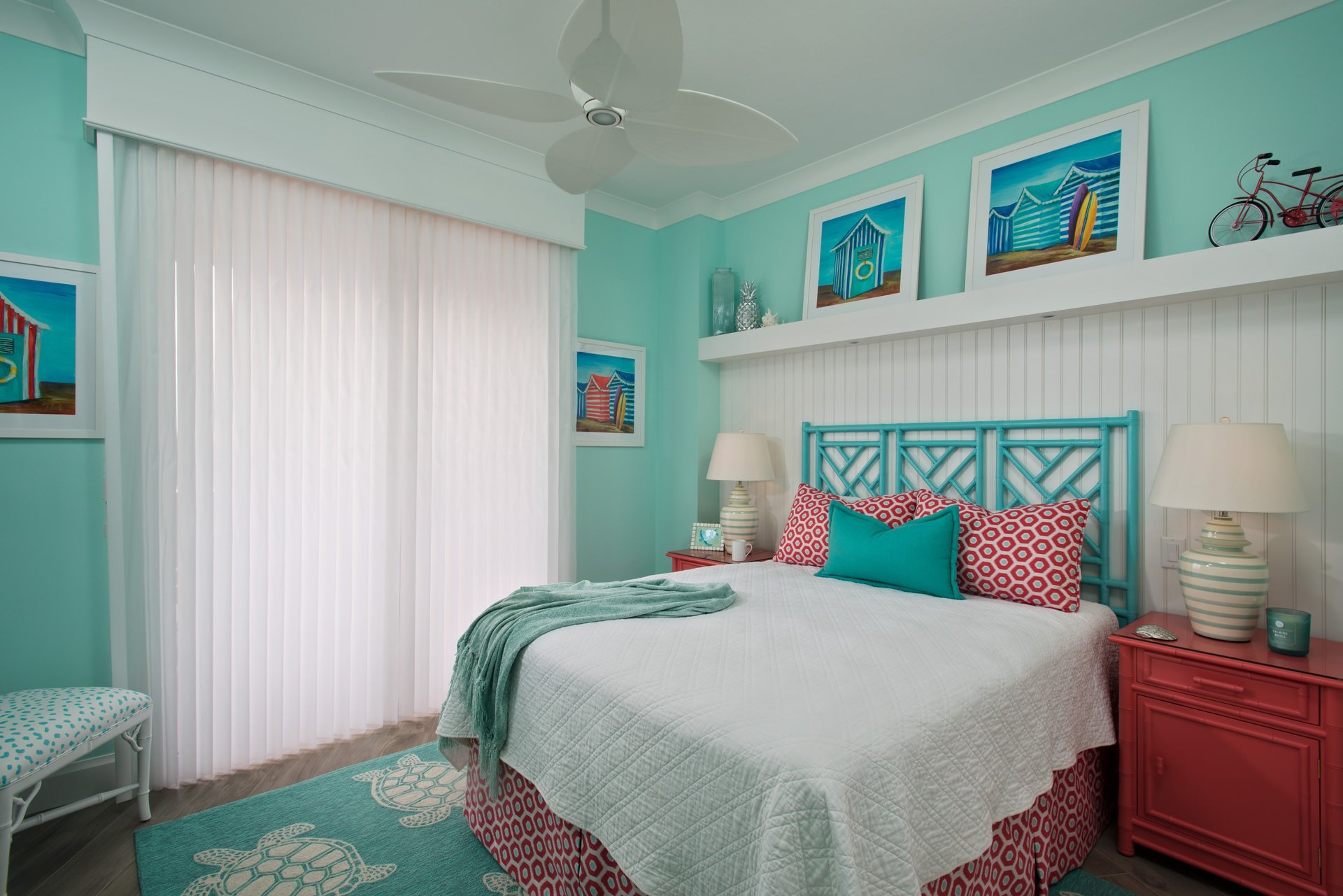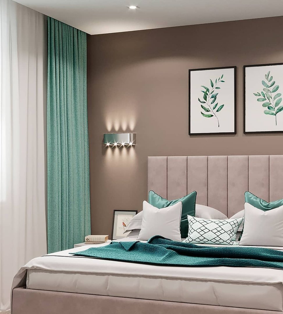 Бирюза в интерьере спальни