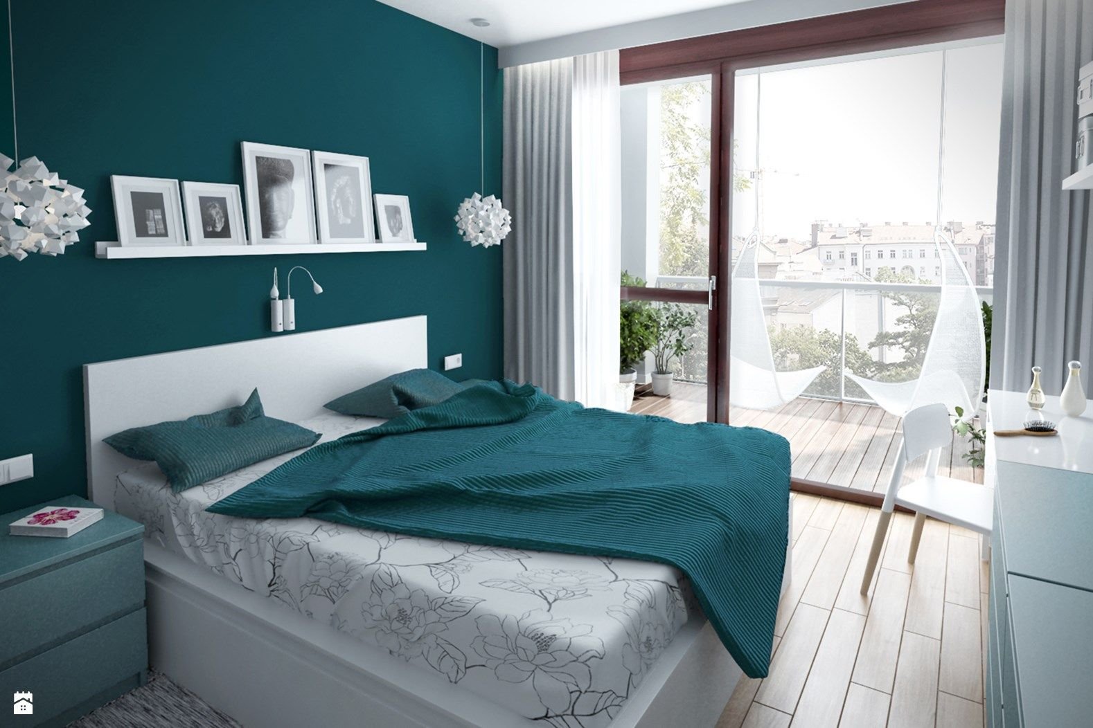 Спальня с бирюзовыми оттенками