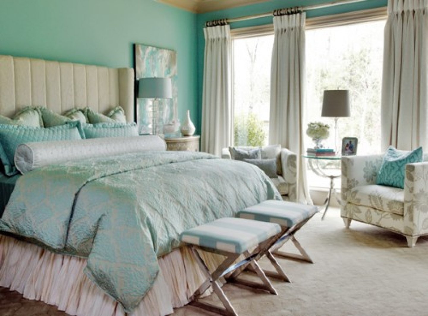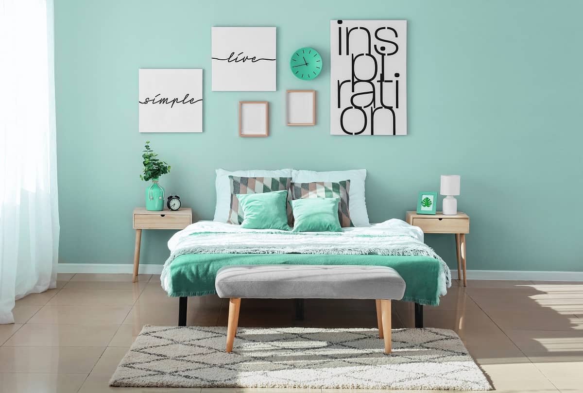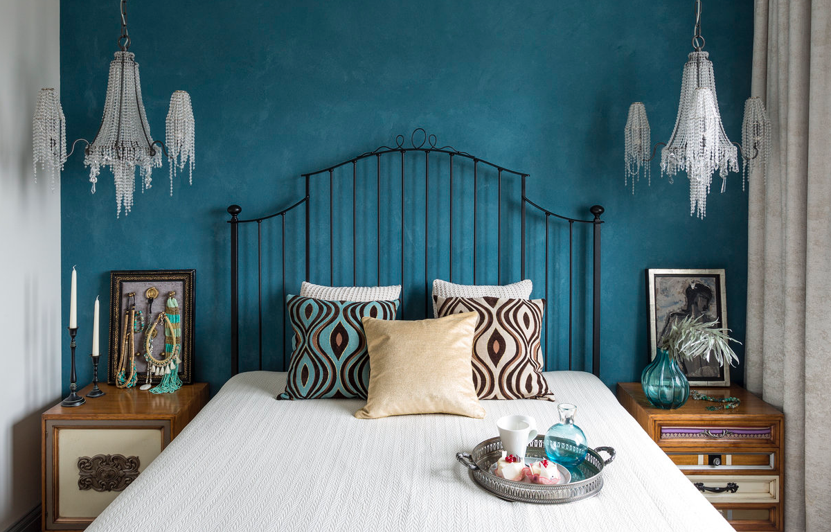 Бирюзовый цвет стен в спальне