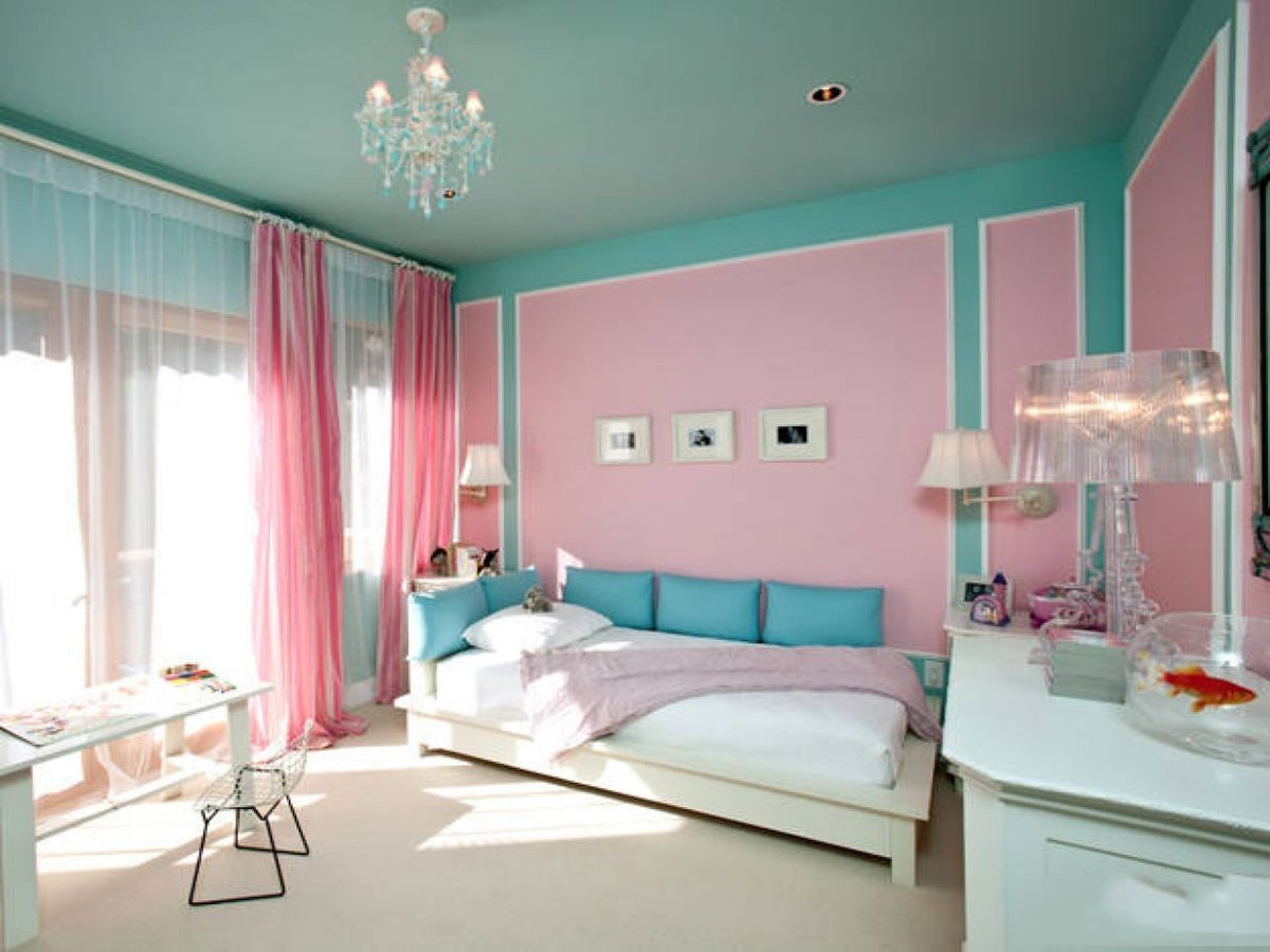 Голубой и розовый в интерьере