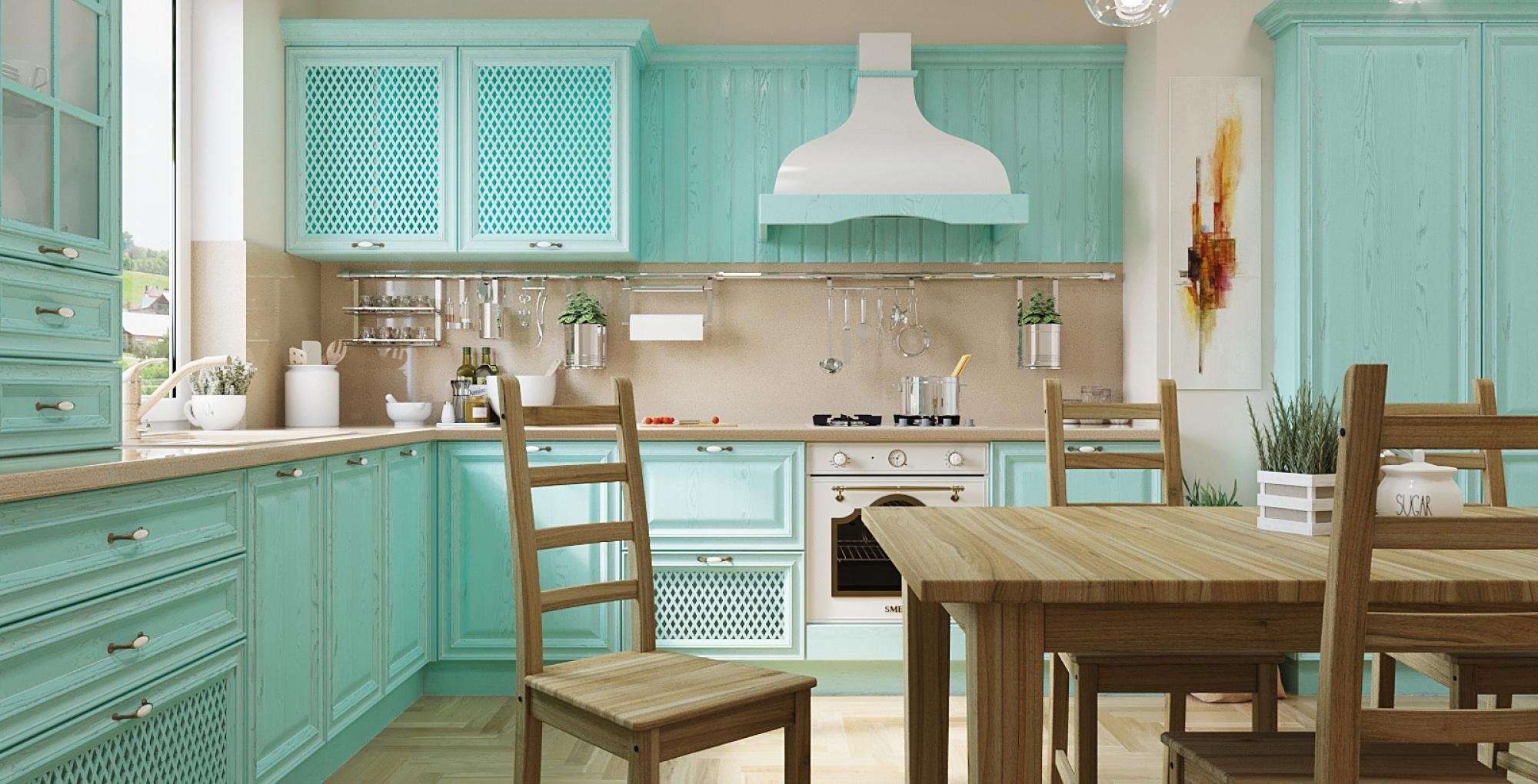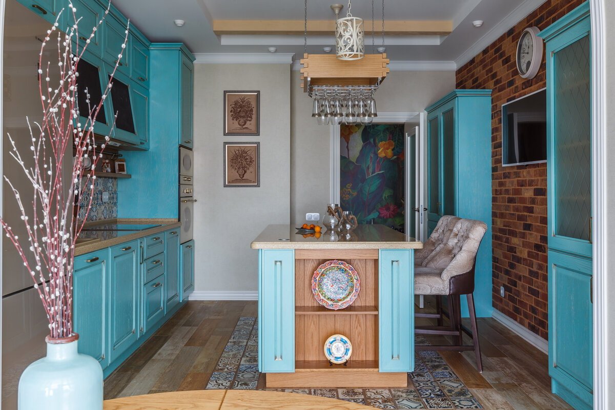 Интерьеры кухни в средиземноморском стиле бирюзовая