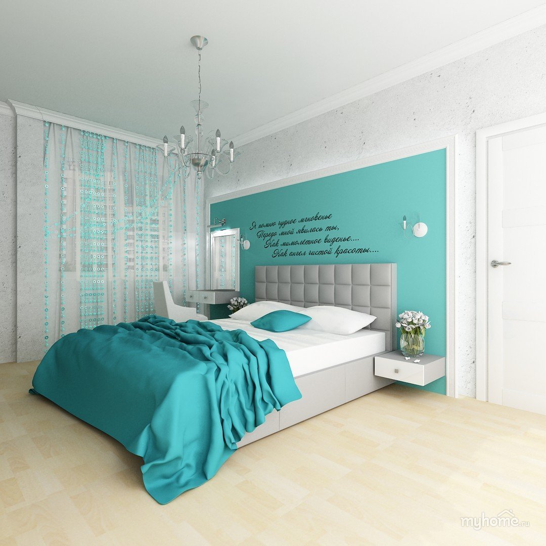 Спальня в бирюзовом цвете