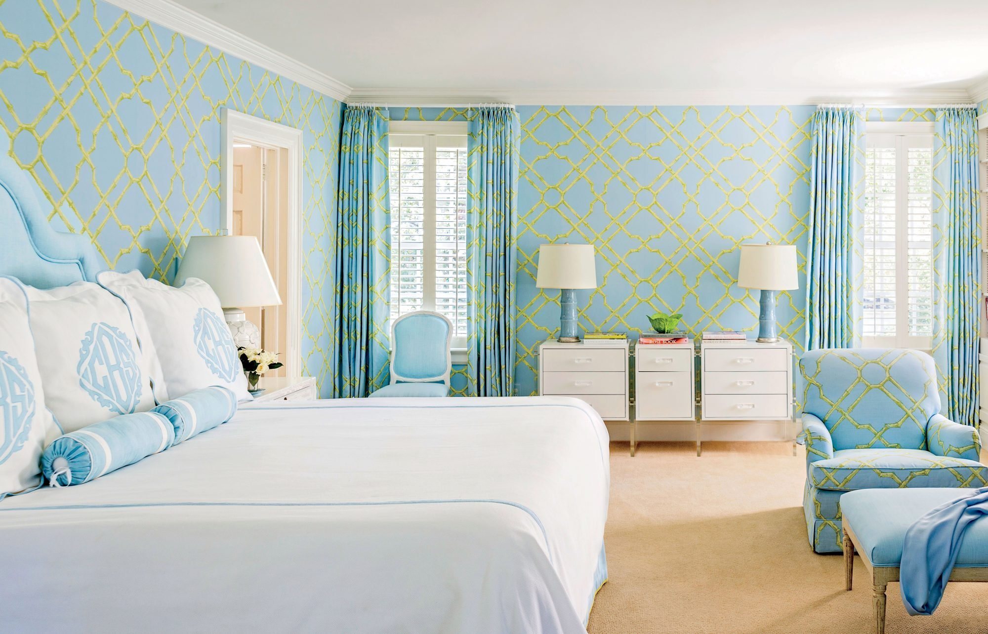 Голубые обои в интерьере