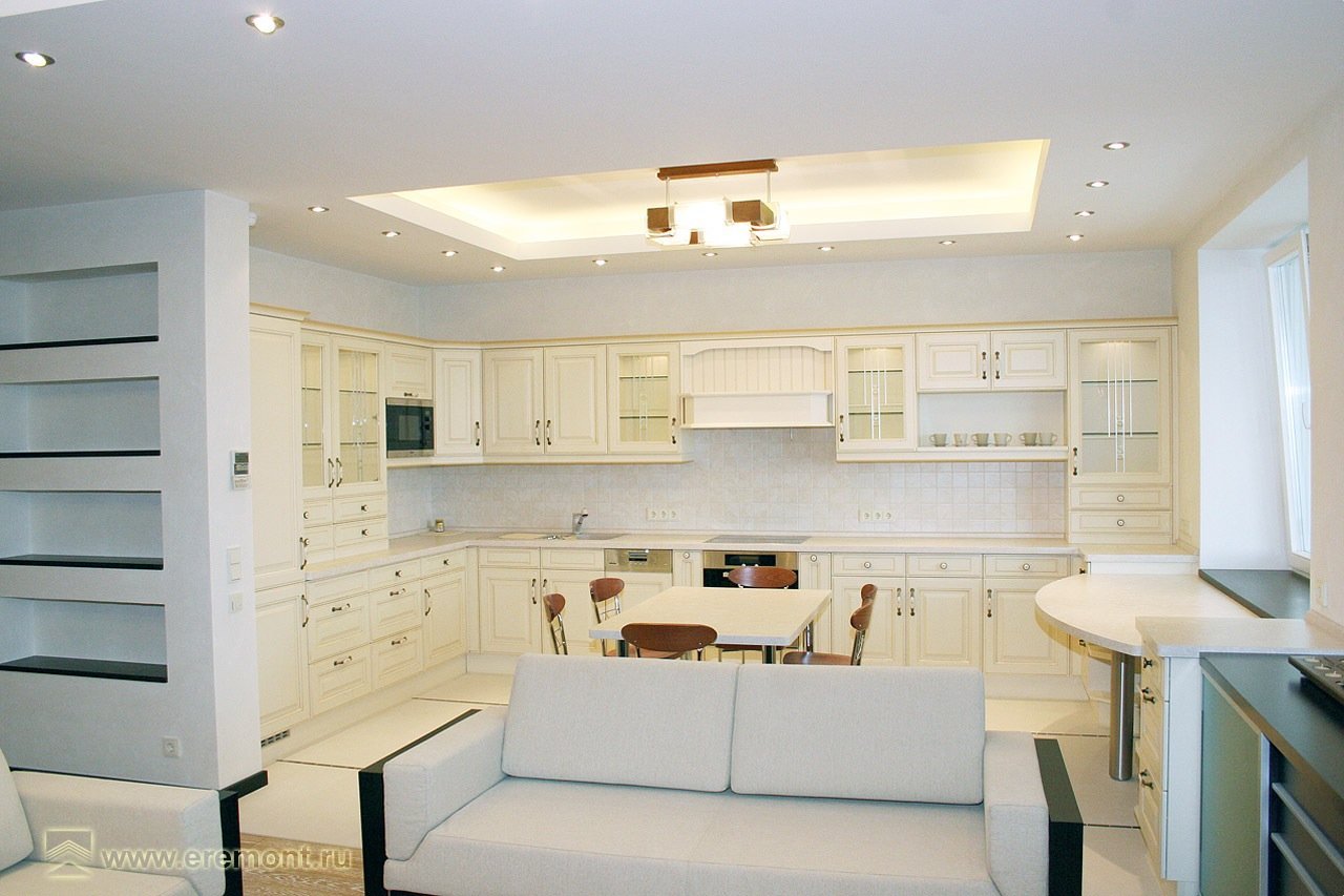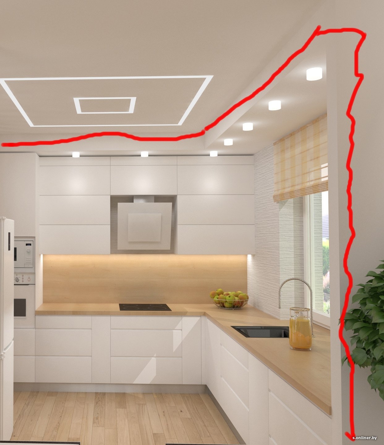 Потолок над кухонным гарнитуром