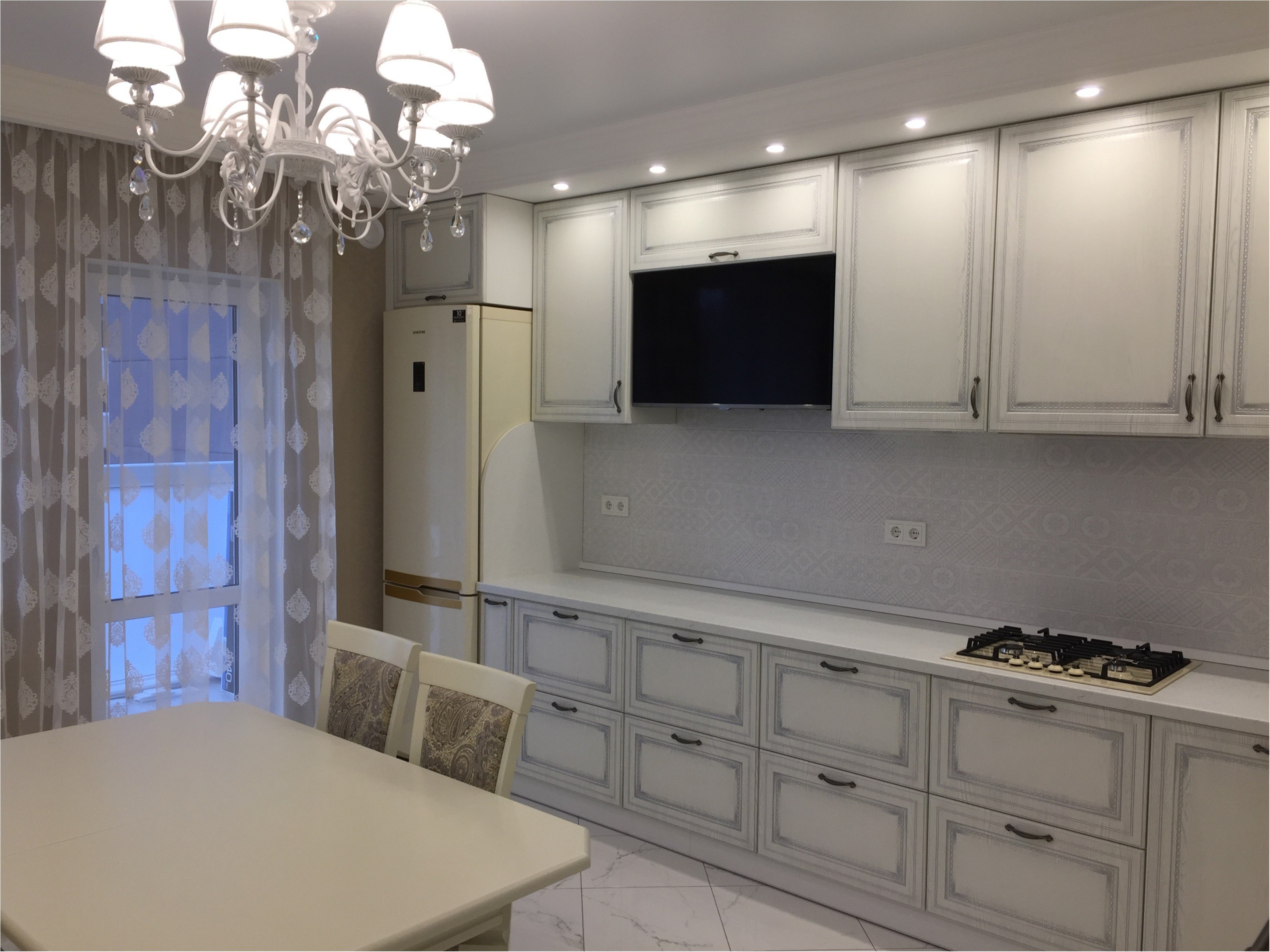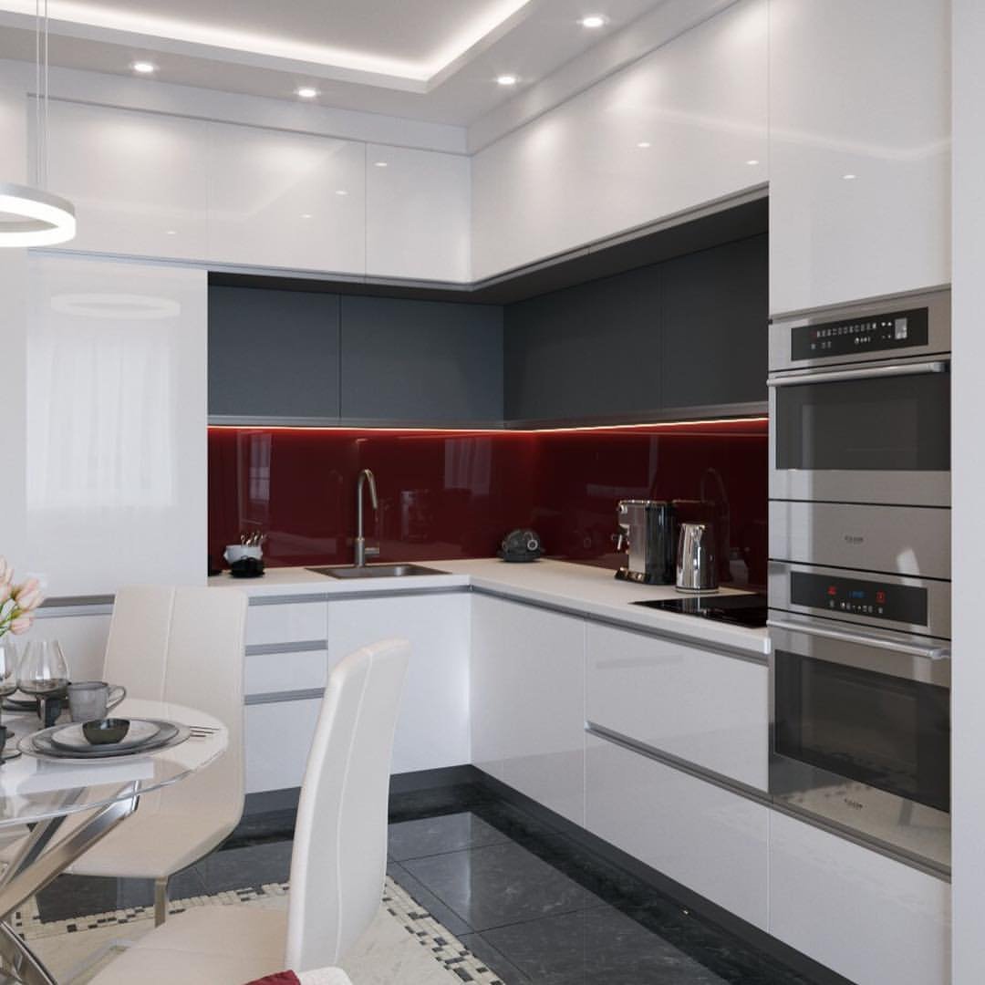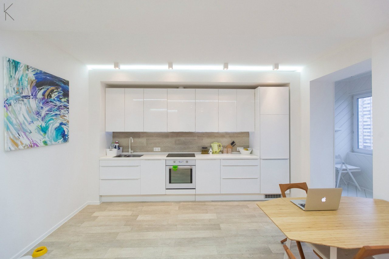 Кухня гостиная белый глянец