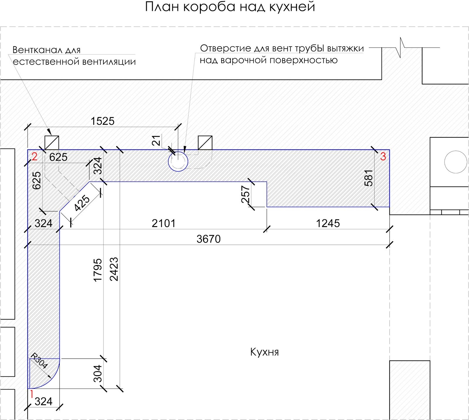 Угловая кухня с вентиляционным коробом