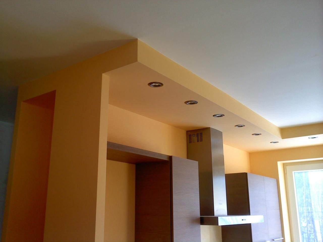 Гипсокартонный короб на потолке на кухне