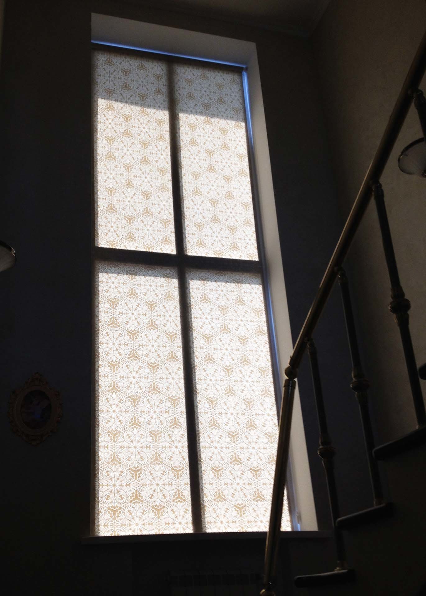 Рулонные шторы на лестничном окне