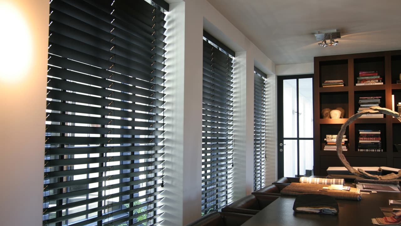 Черные горизонтальные жалюзи в интерьере