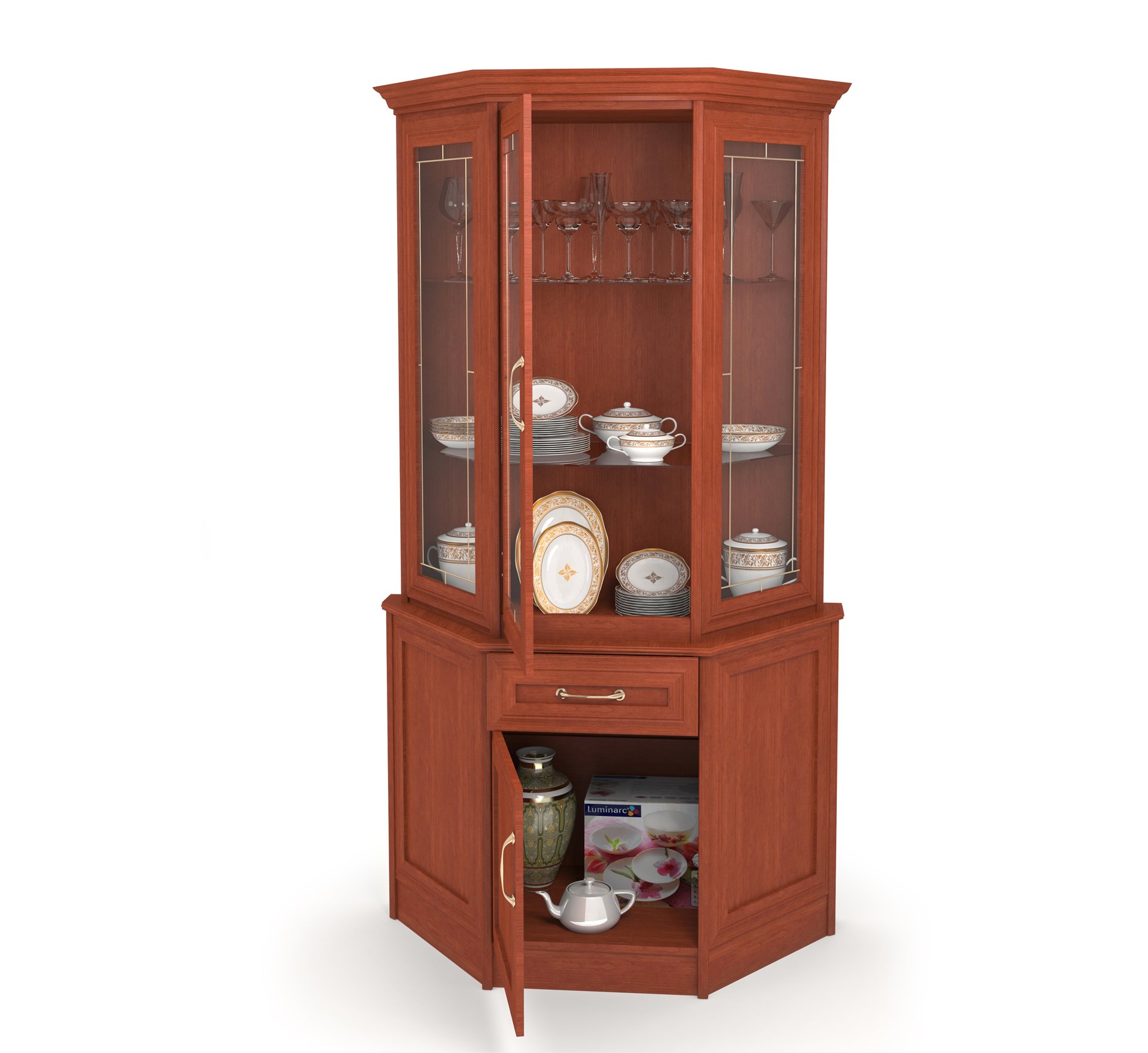 Угловой шкаф для посуды в гостиную