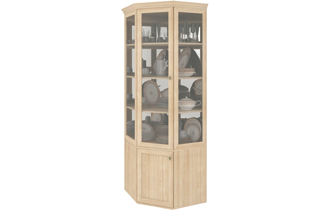 Угловой стеклянный шкаф для посуды