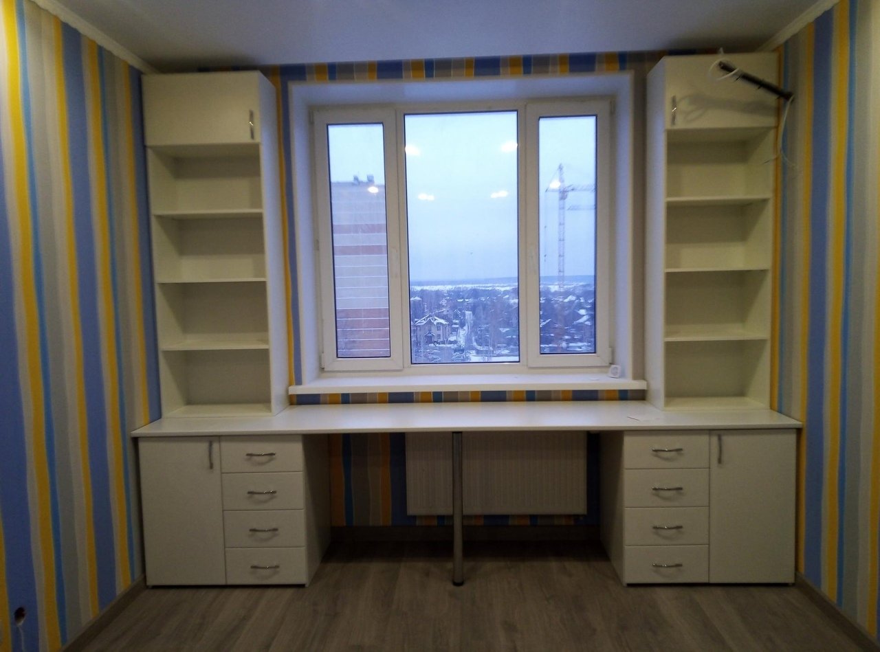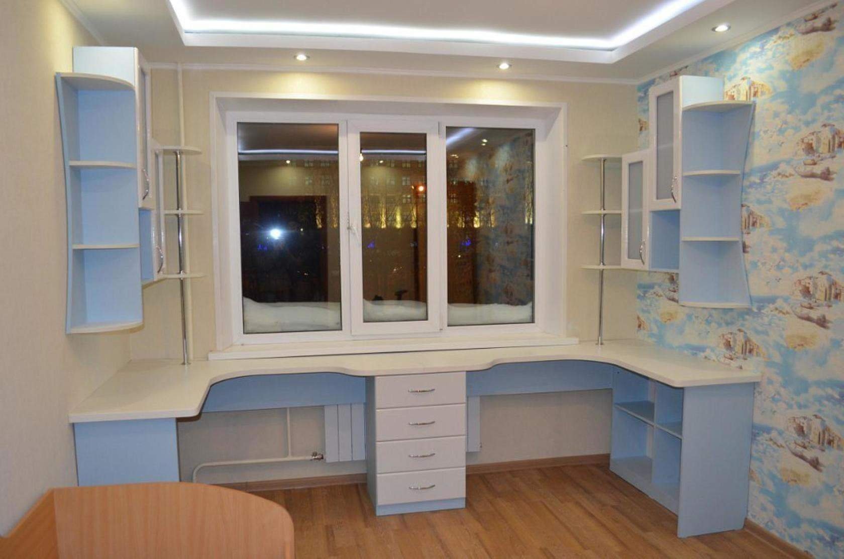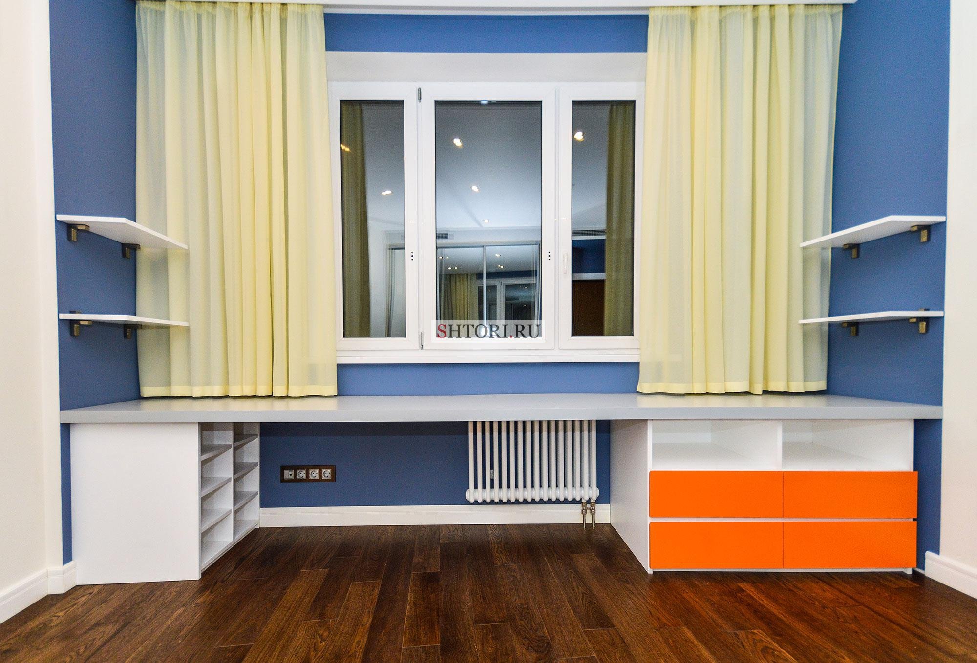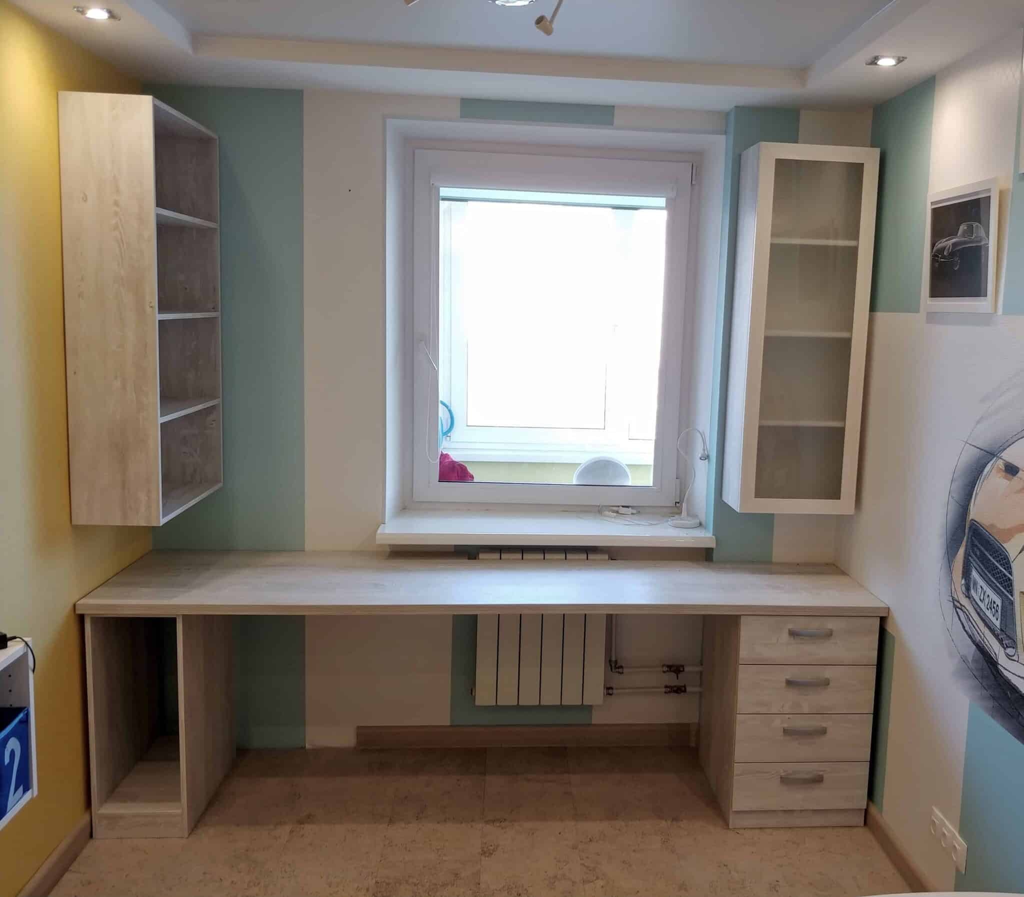 Письменный стол вдоль окна в детской