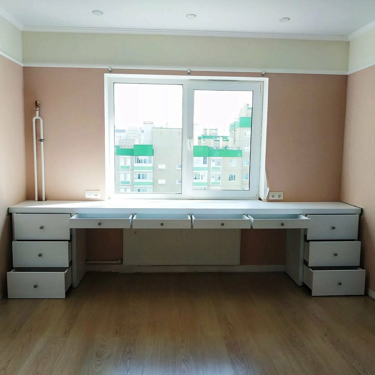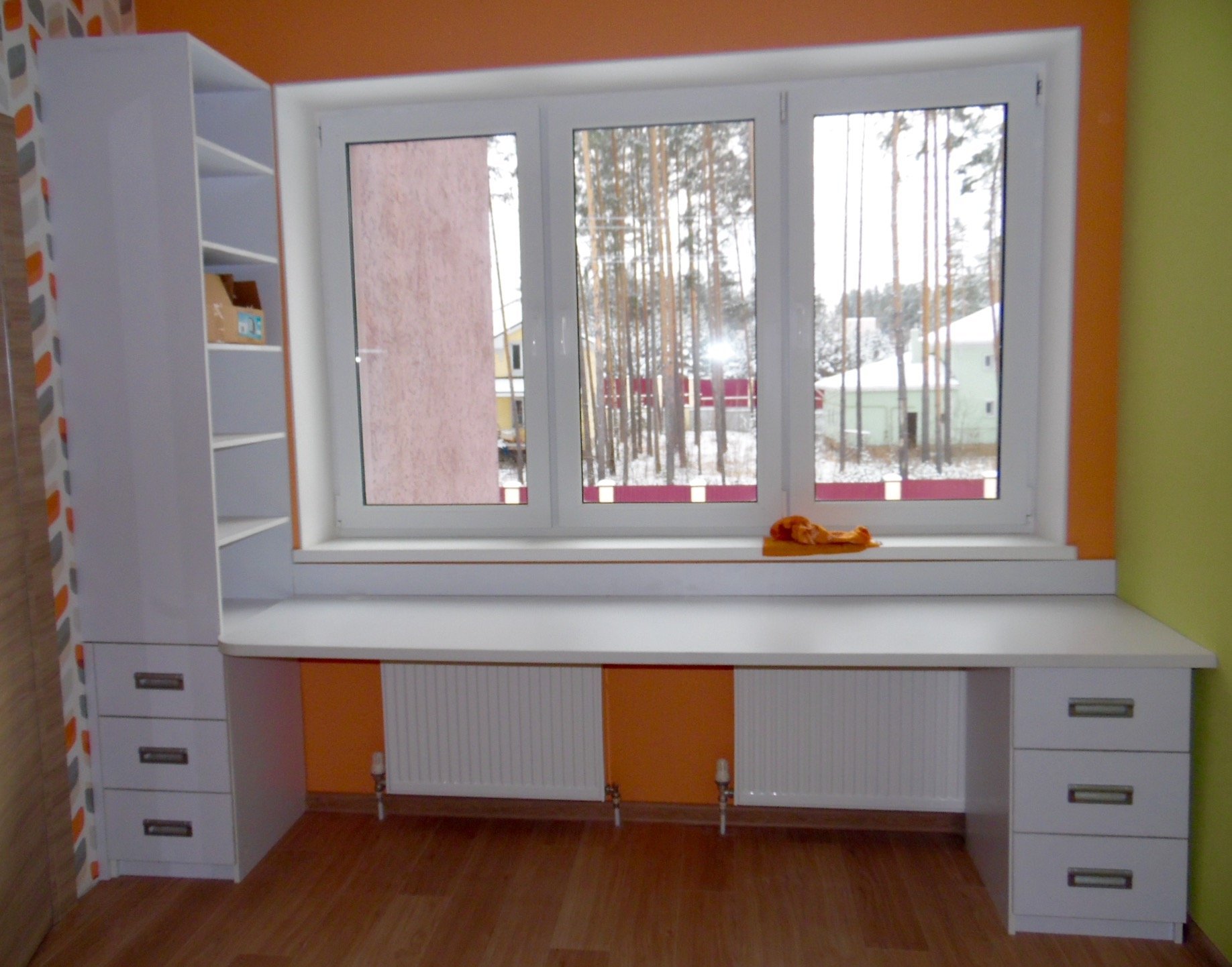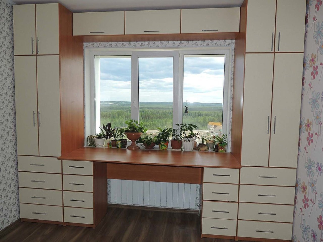 Шкафы вдоль окна