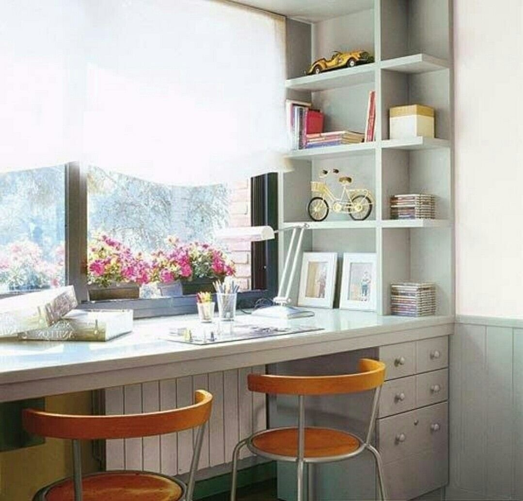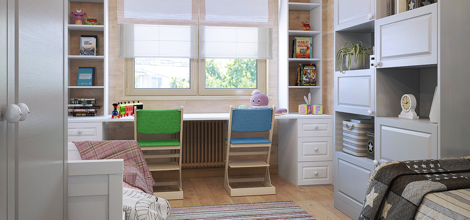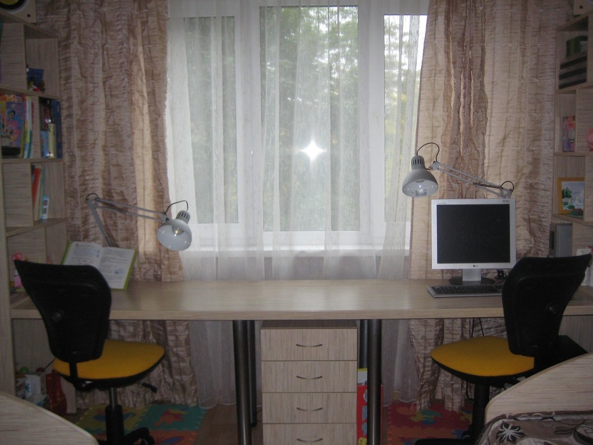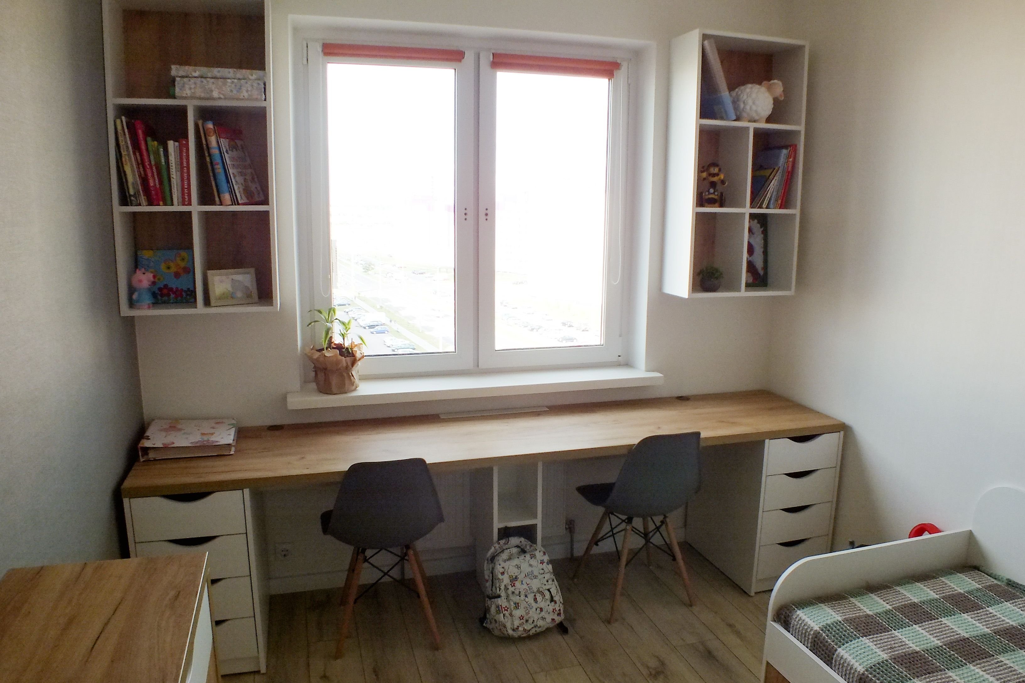 Рабочая зона у окна в детской для двоих
