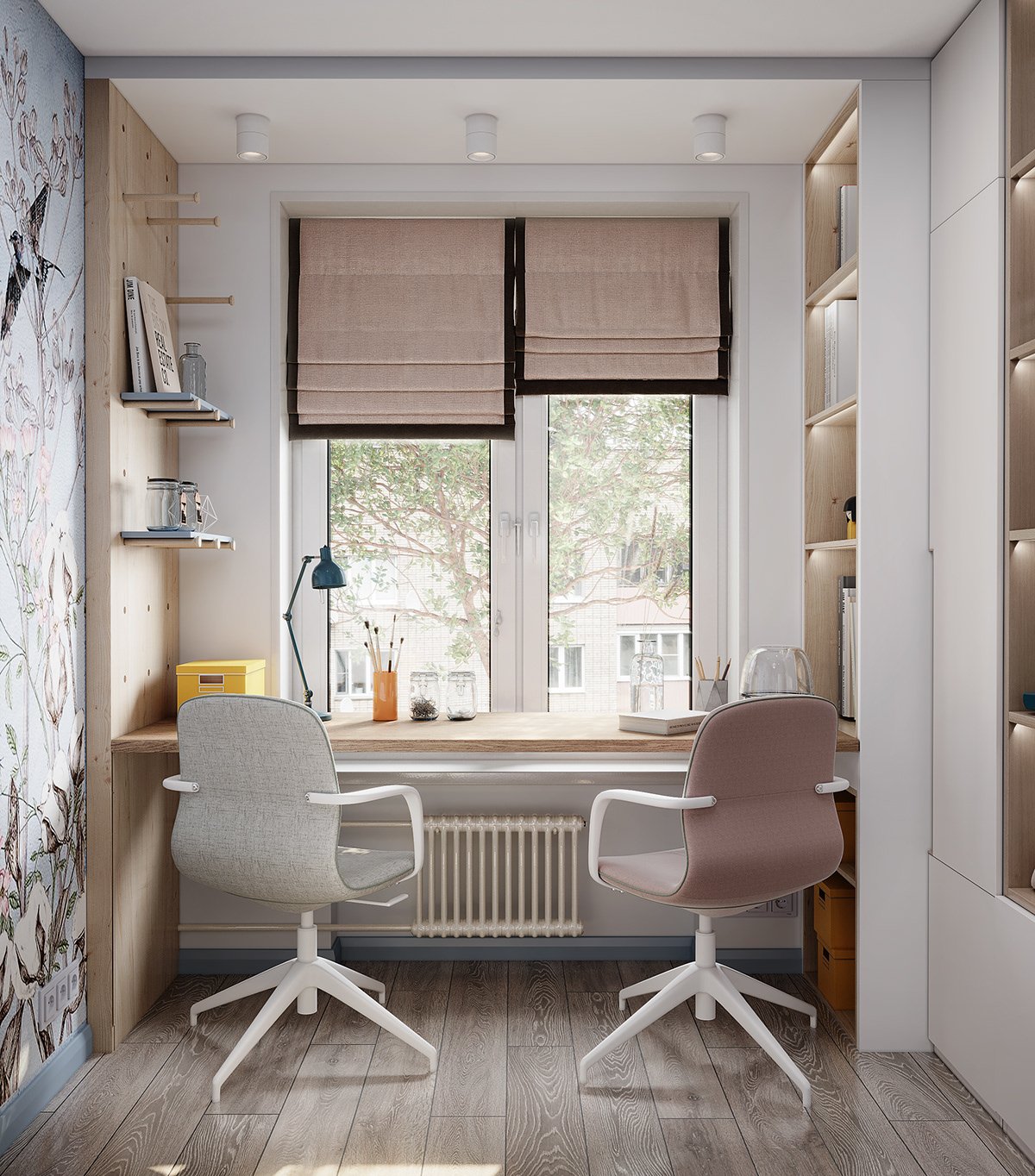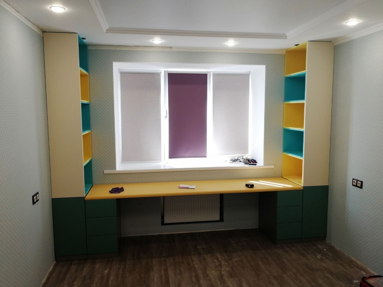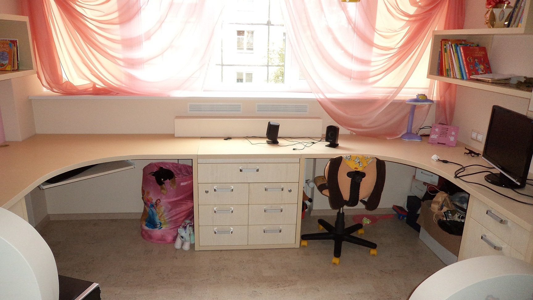 Рабочая зона у окна в детской для двоих