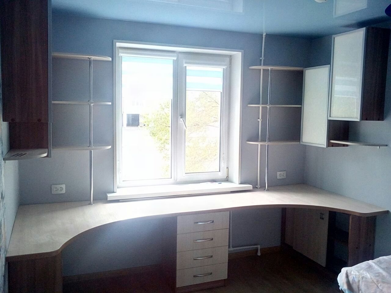 Стол у окна с полками