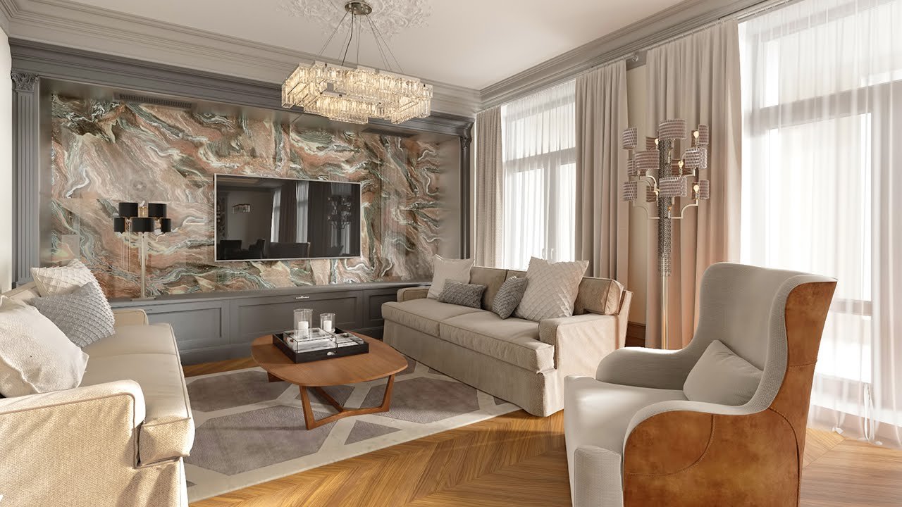 Американская Неоклассика в интерьере гостиной