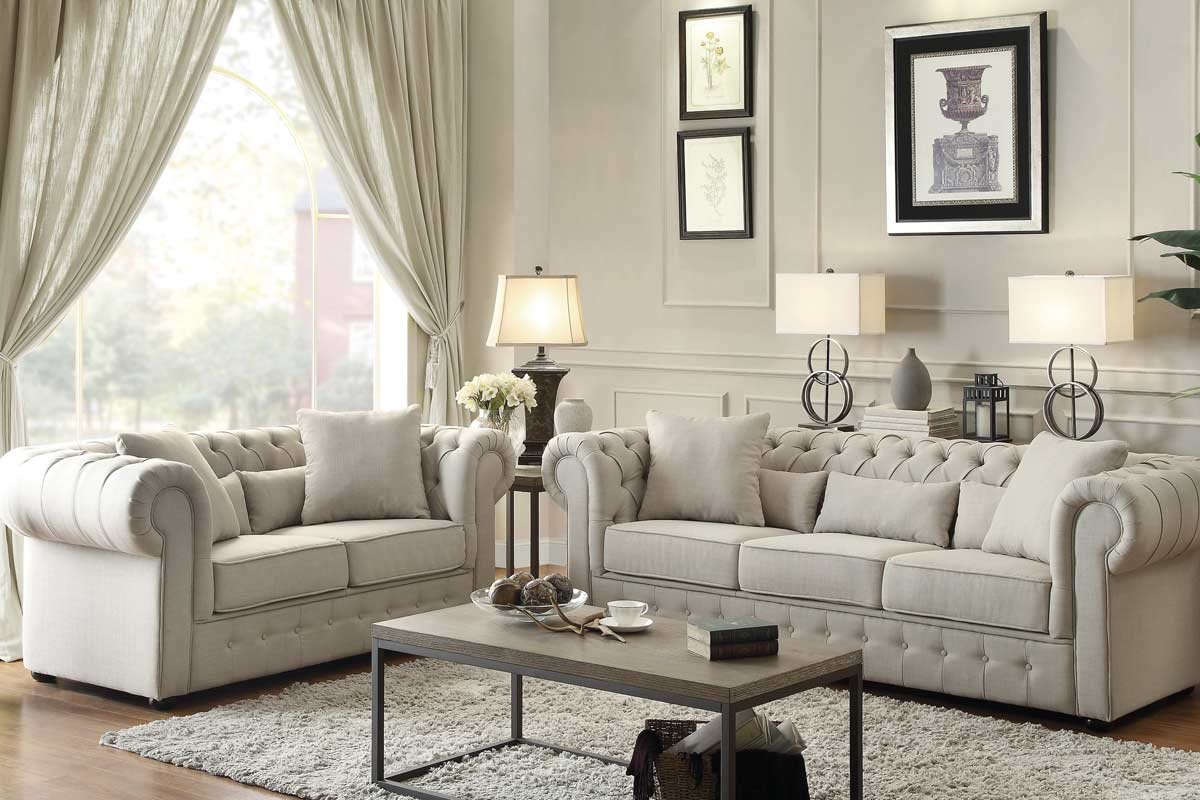 Бежевый диван Честер в интерьере