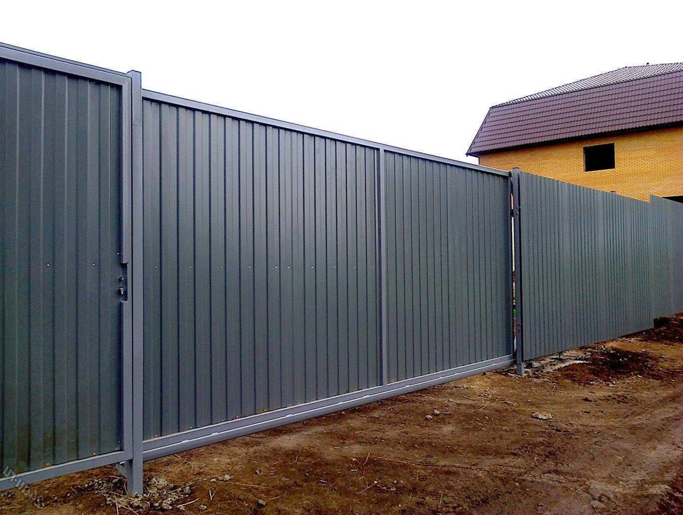 Забор из профнастила серого цвета