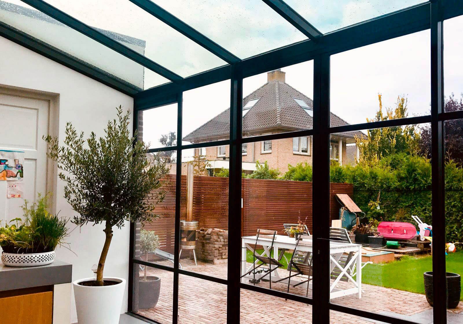 Стеклянный навес над террасой