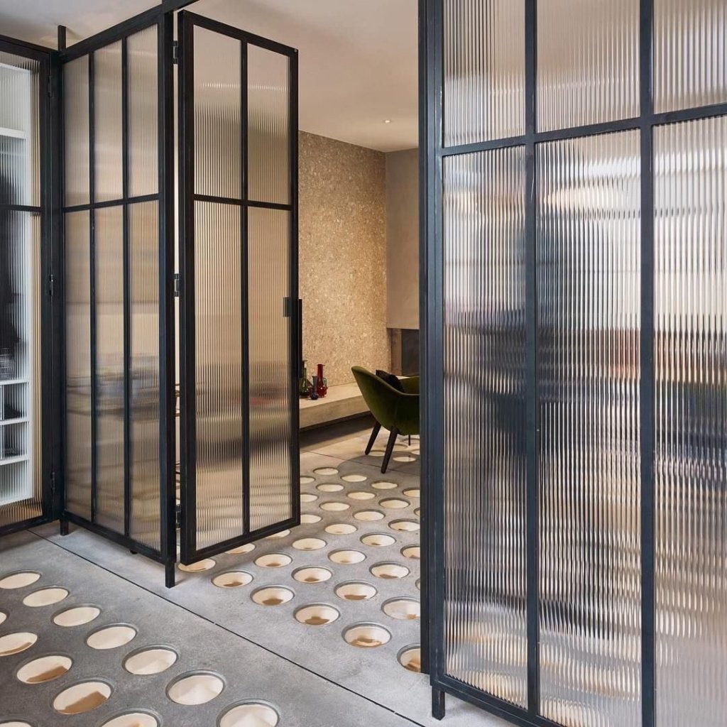 Лофт перегородка с рифленым стеклом