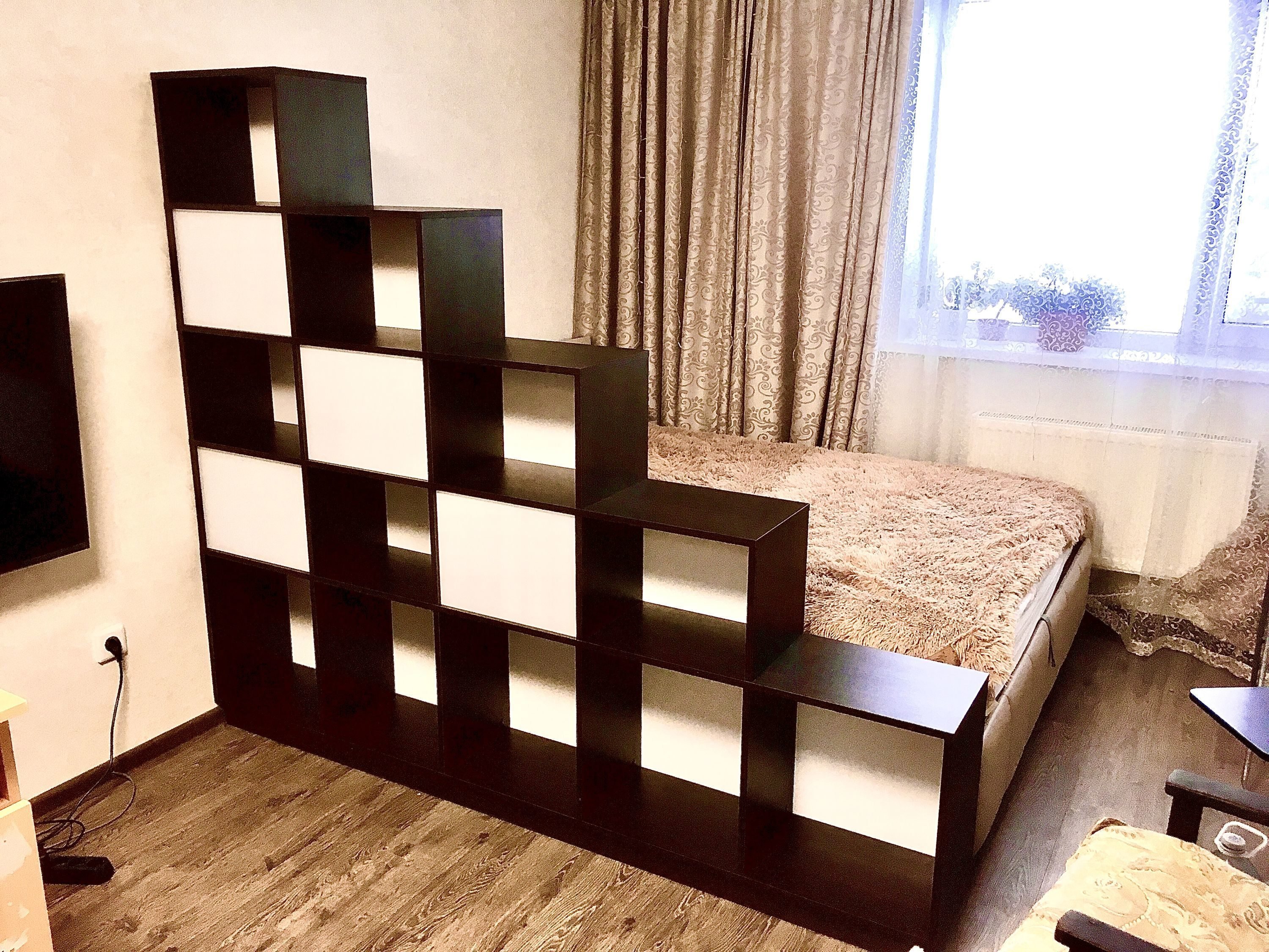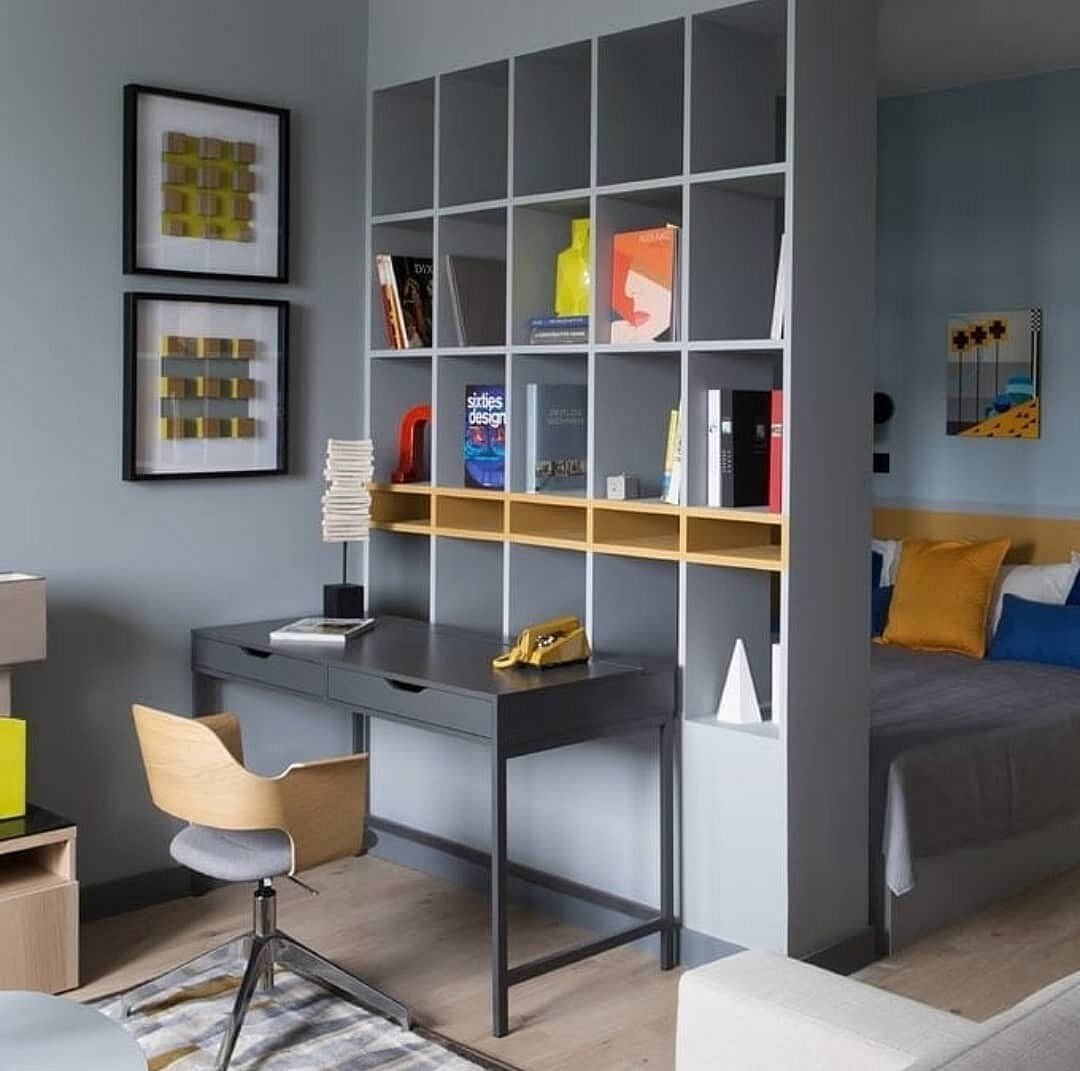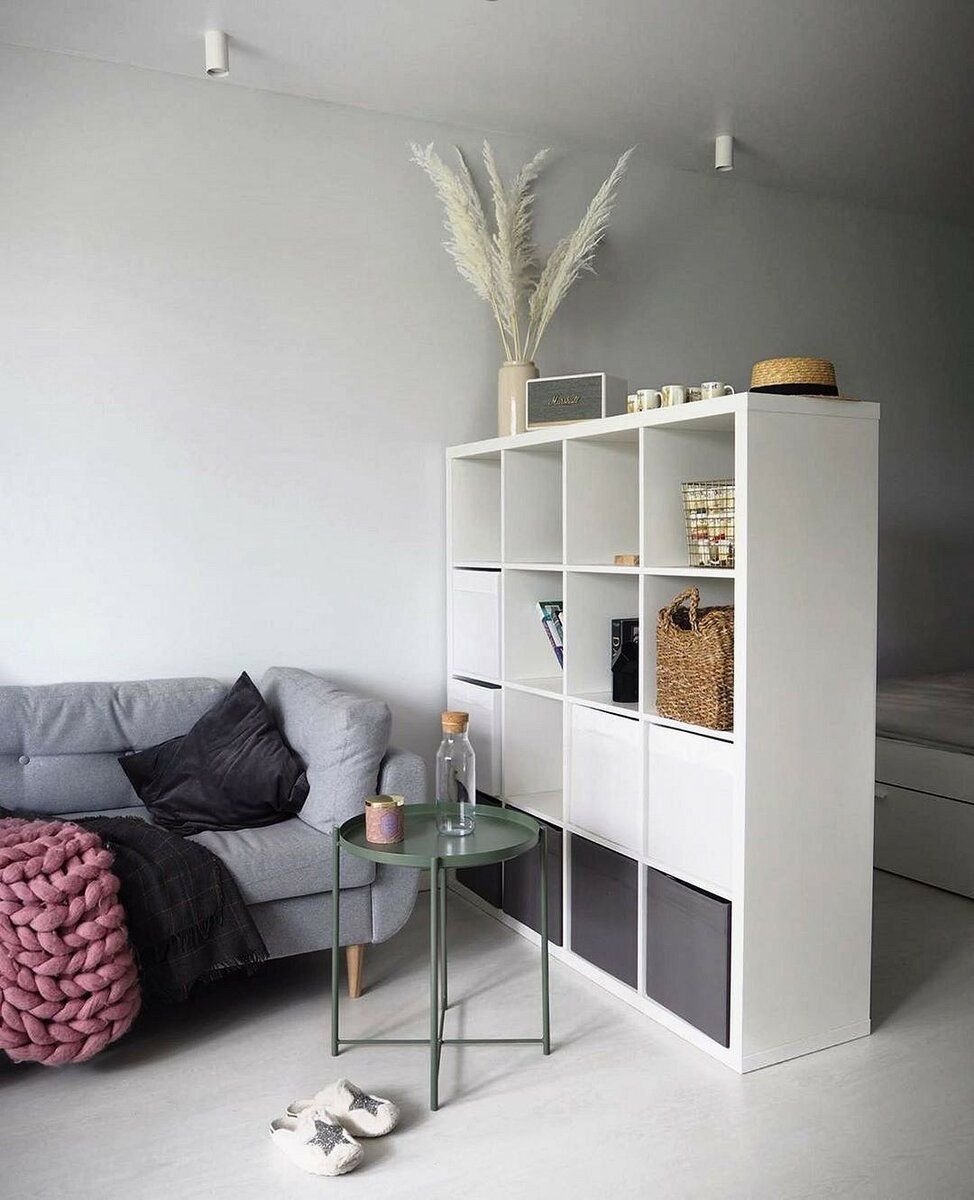 Спальня гостиная зонирование икеа стеллаж