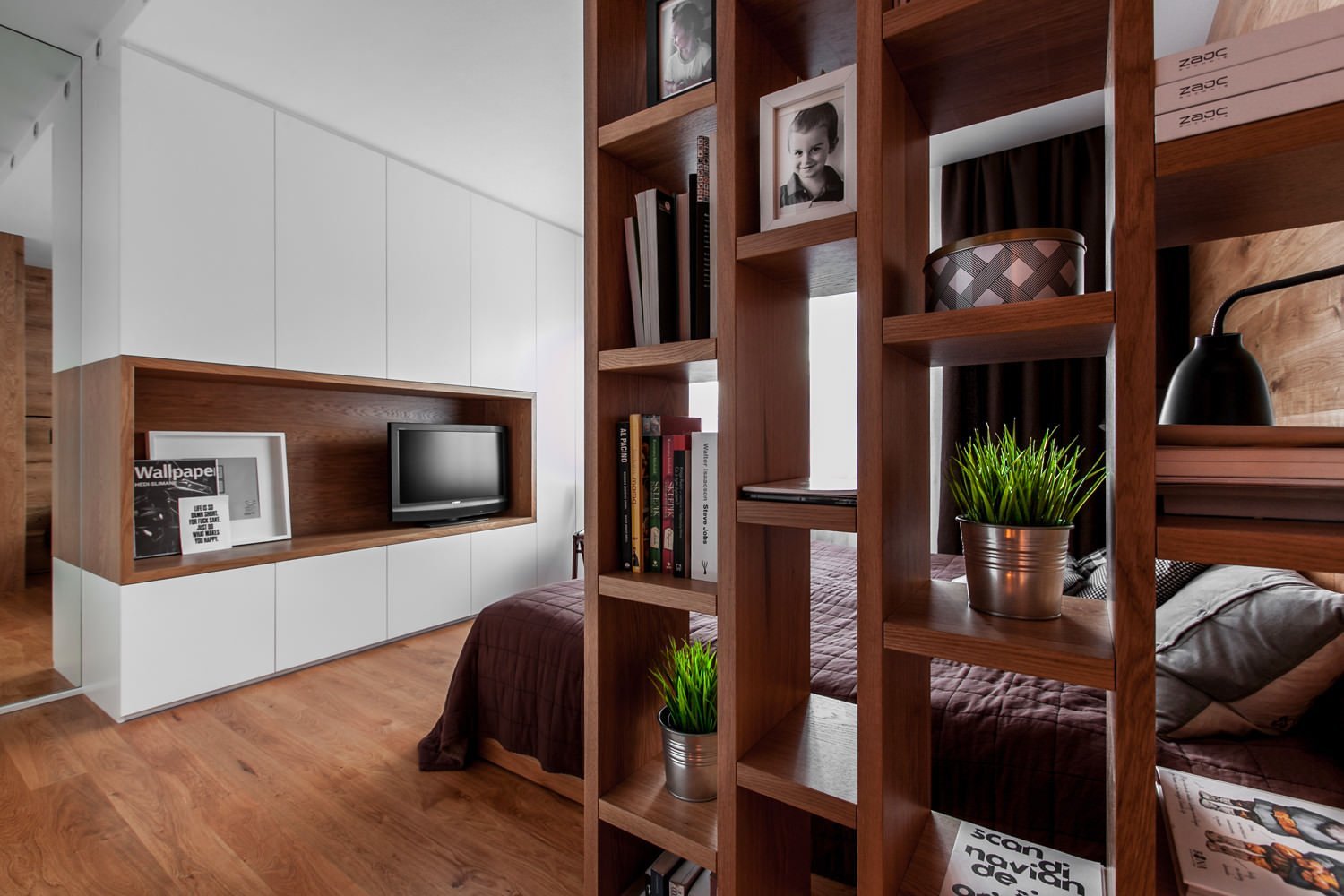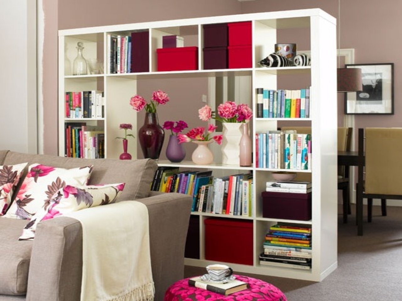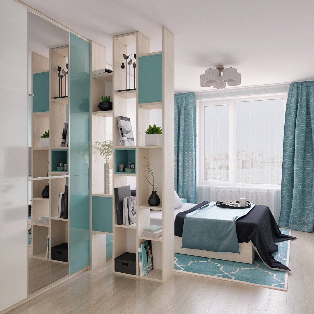 Спальня гостиная зонирование икеа стеллаж