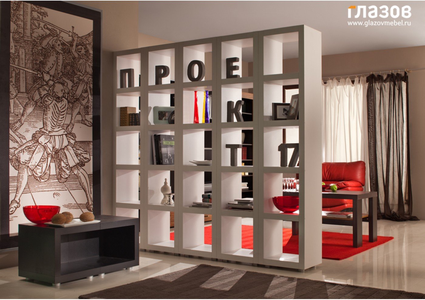 Мебельная перегородка для зонирования комнаты