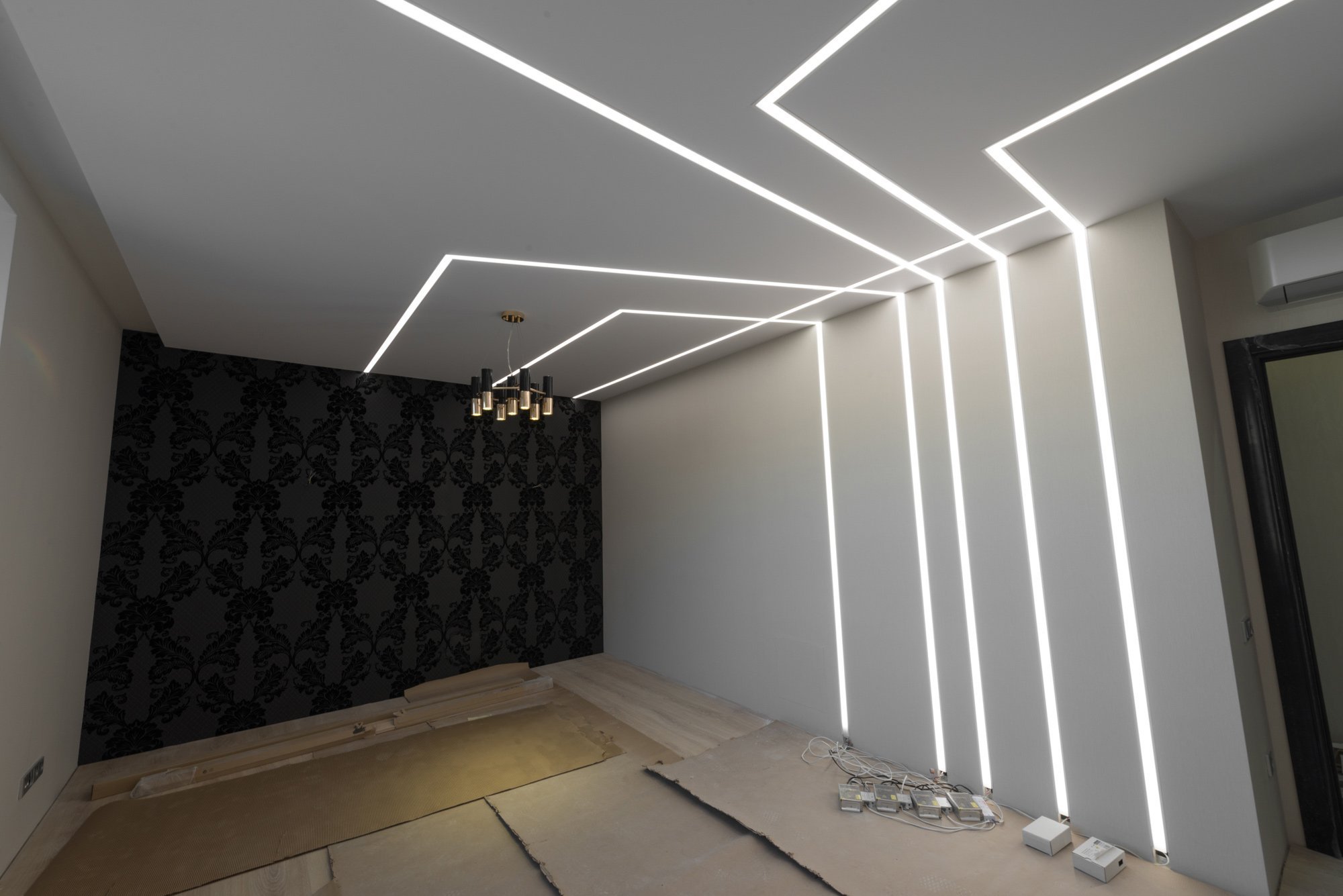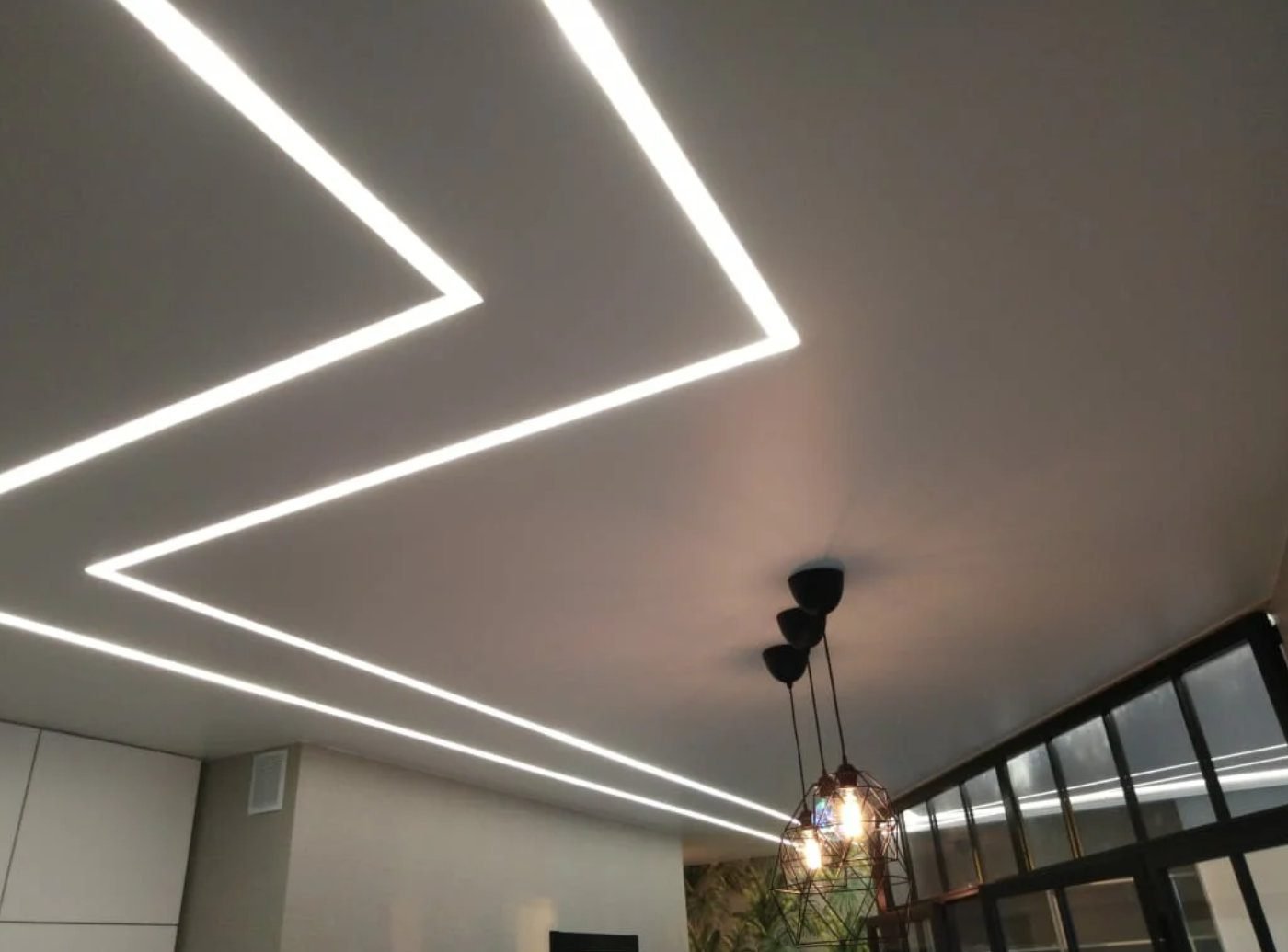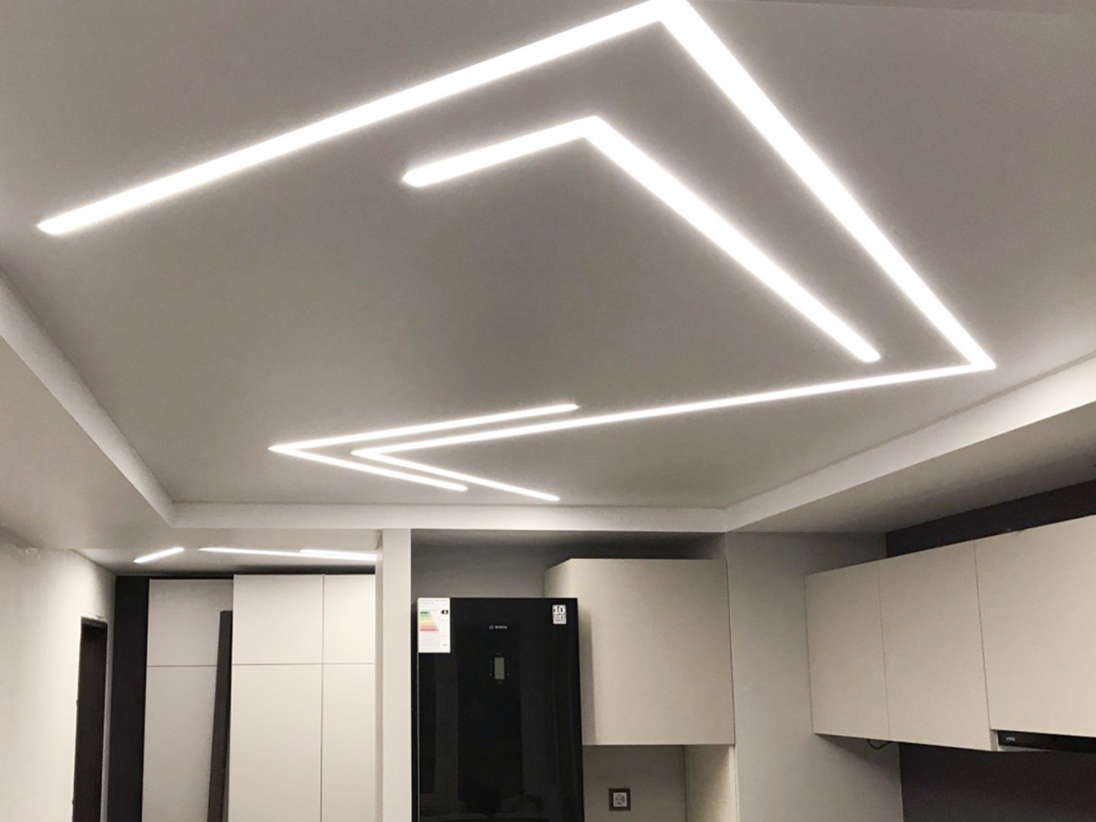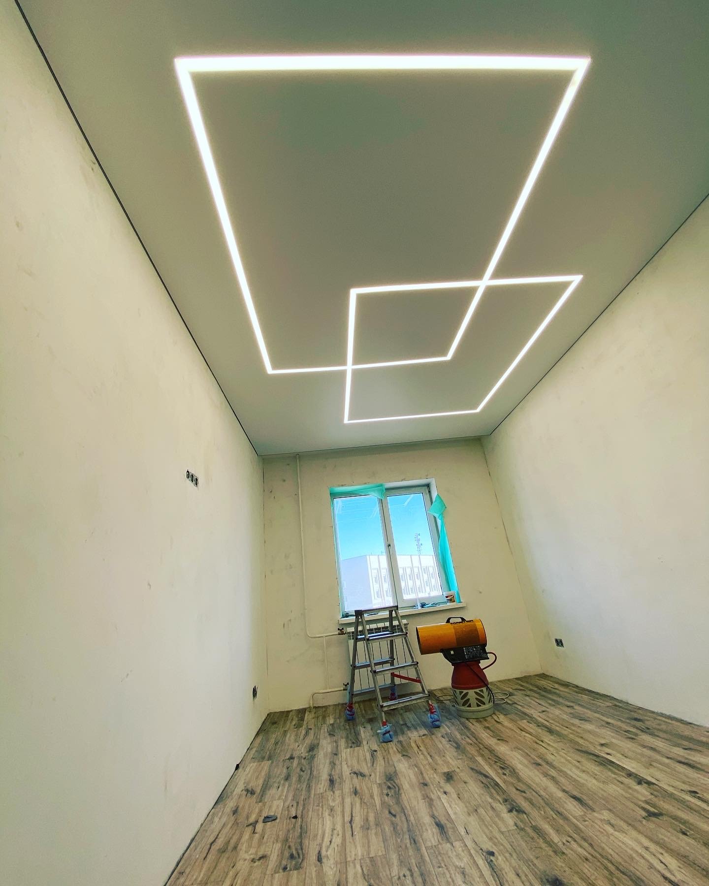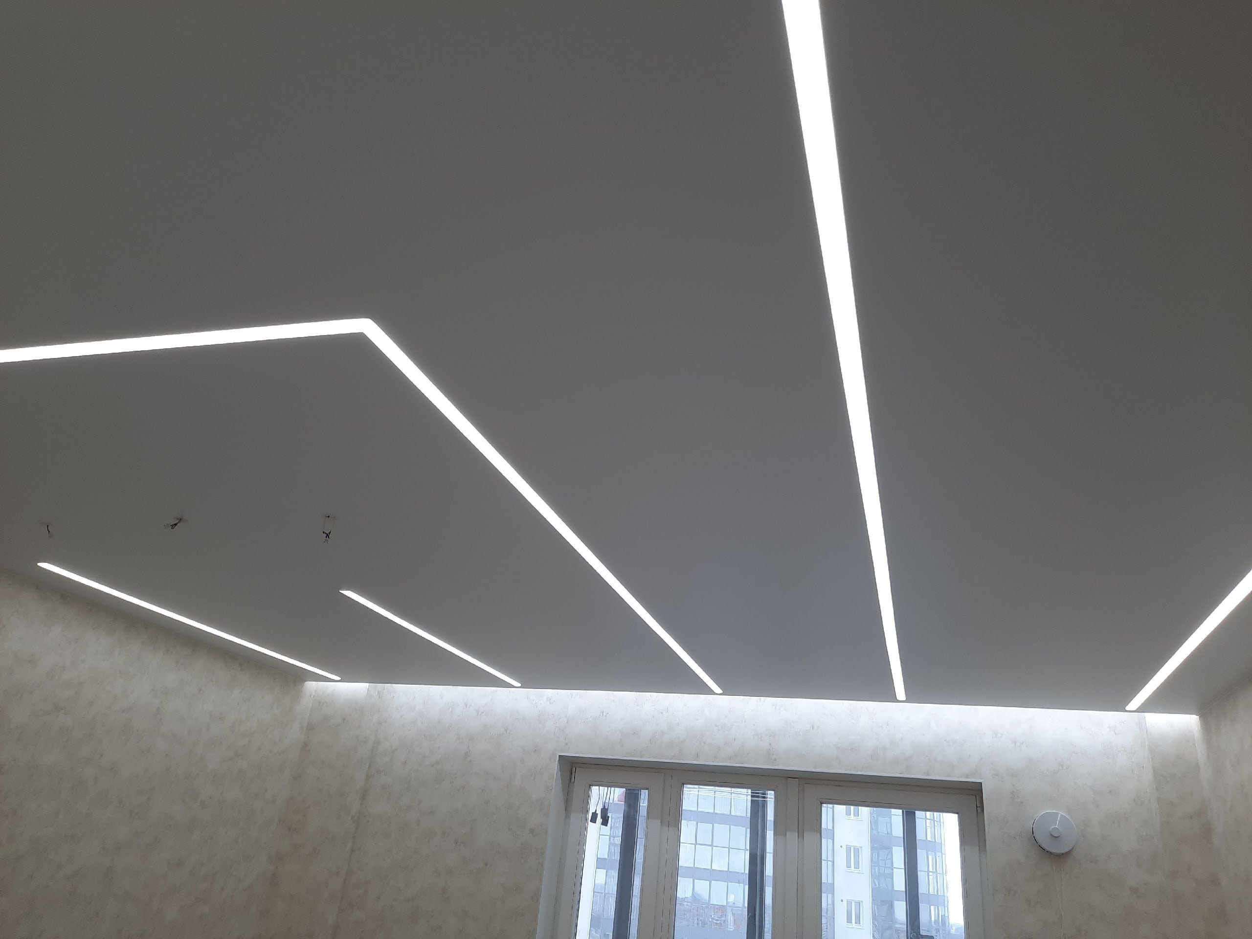 Флекси световые линии 30мм на натяжном потолке рассеиватель