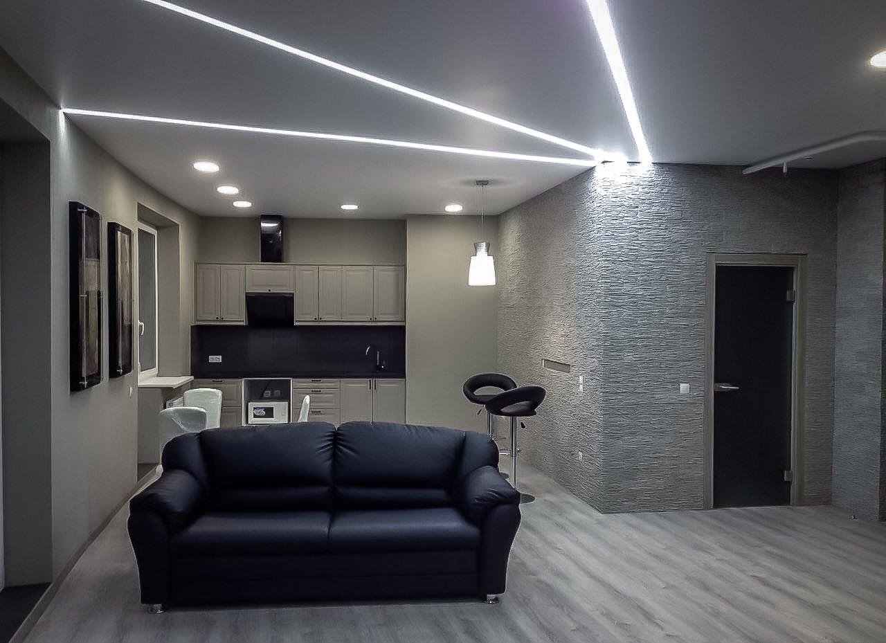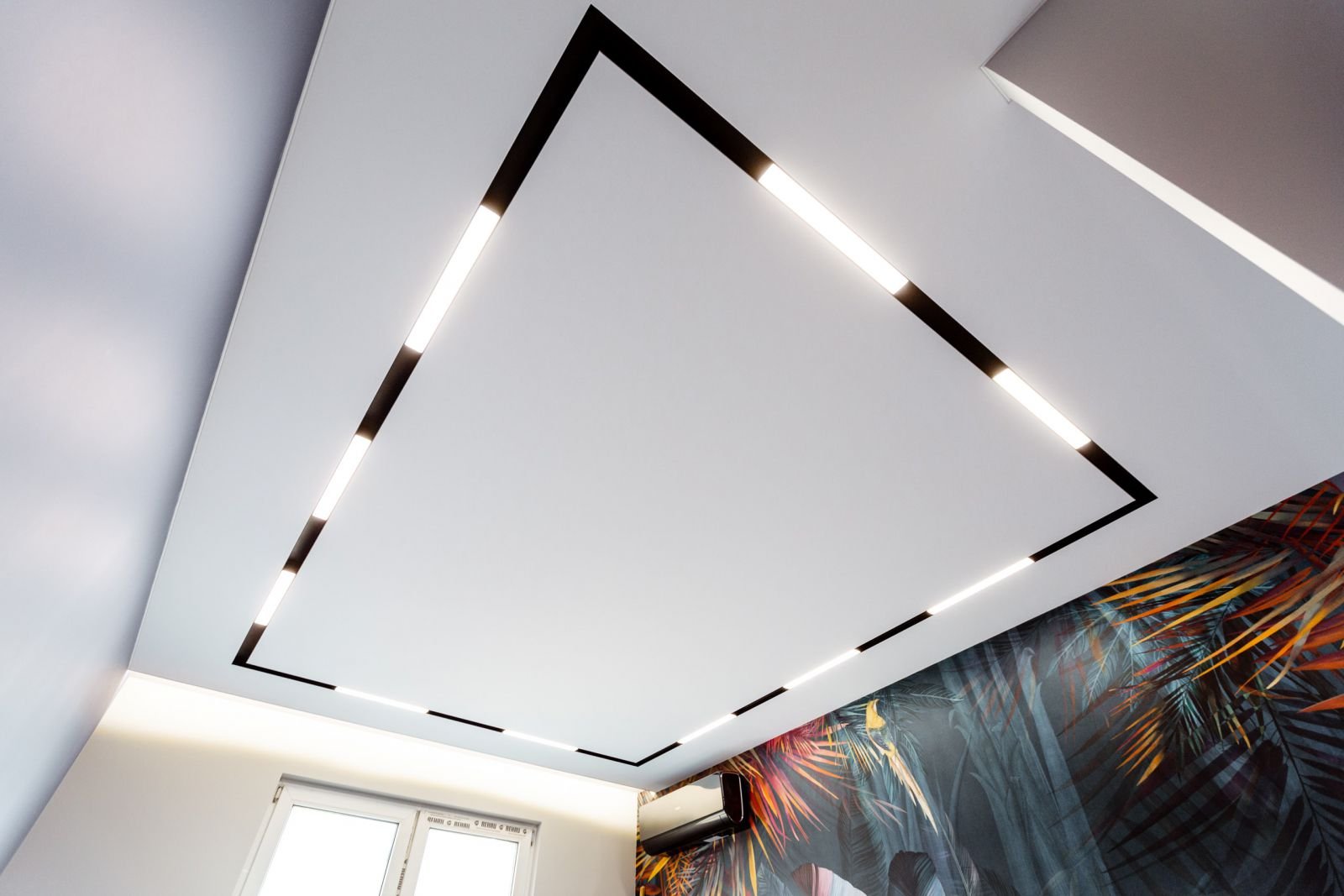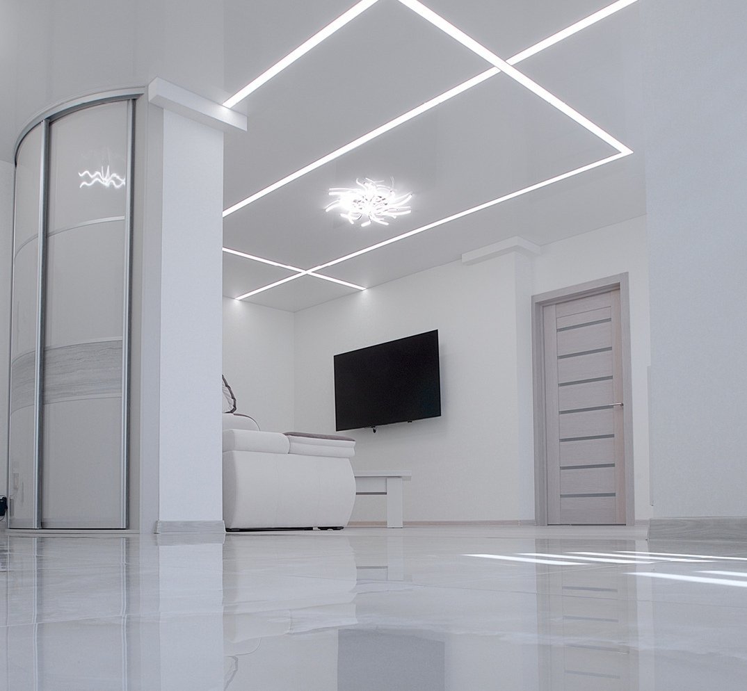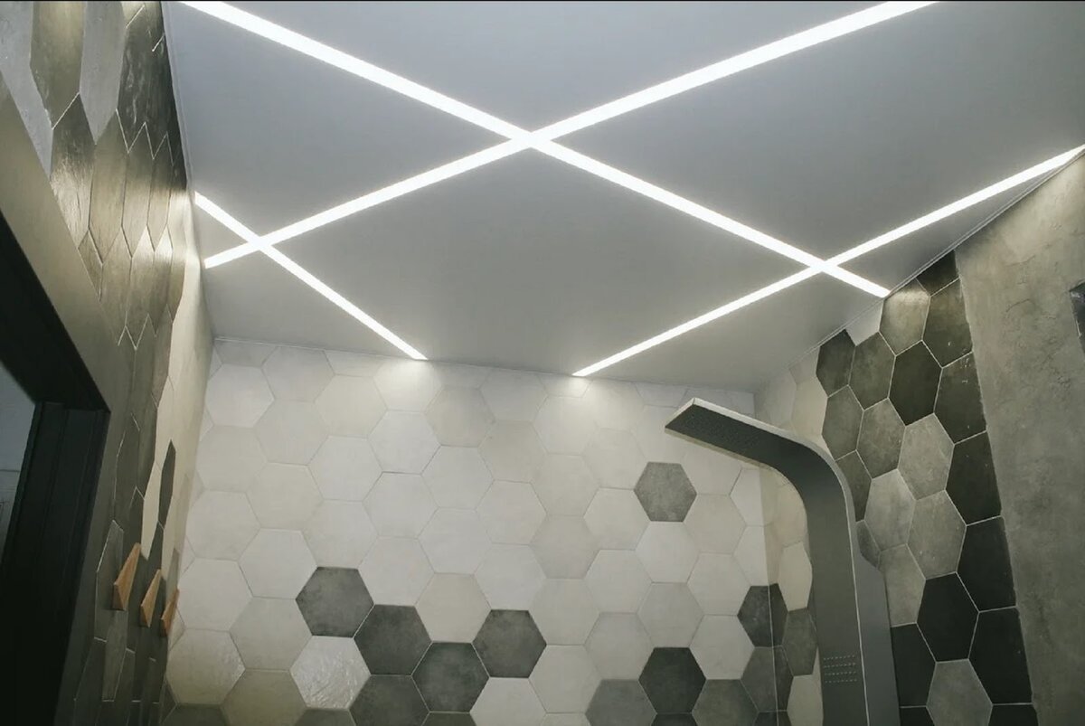 Флекси световые линии 30мм на натяжном потолке рассеиватель