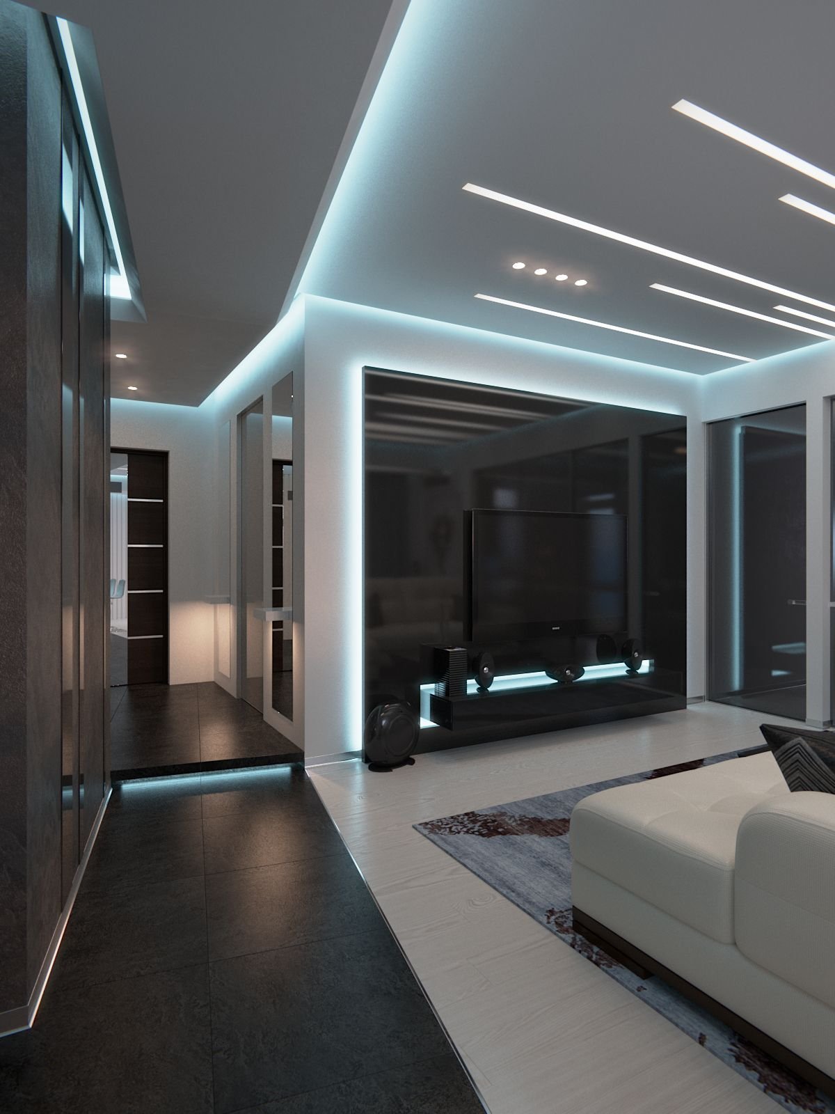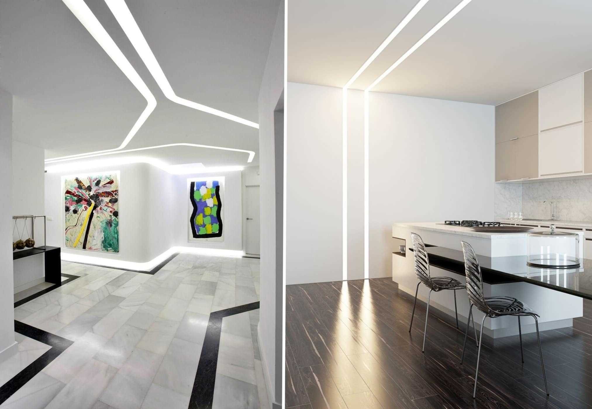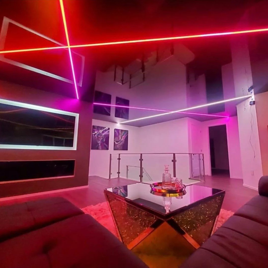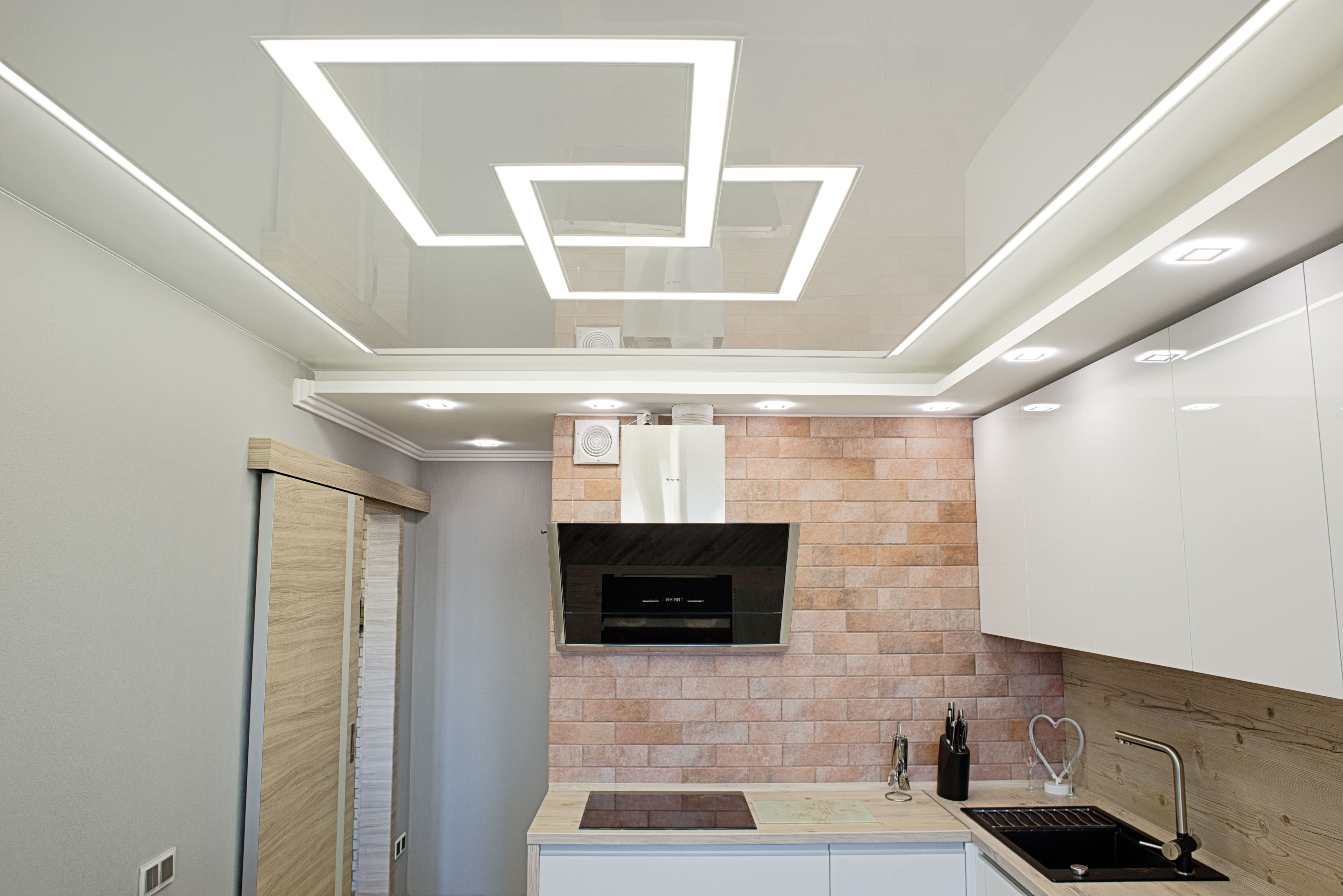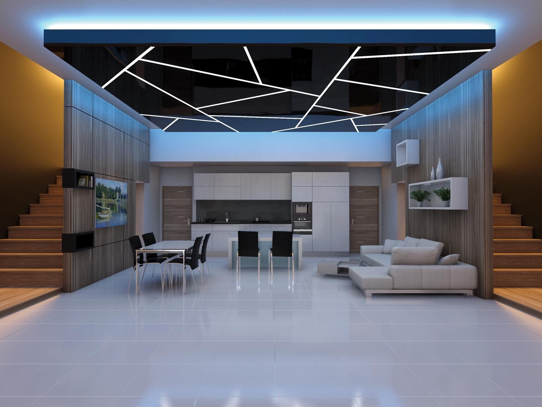 Флекси световые линии 30мм на натяжном потолке рассеиватель