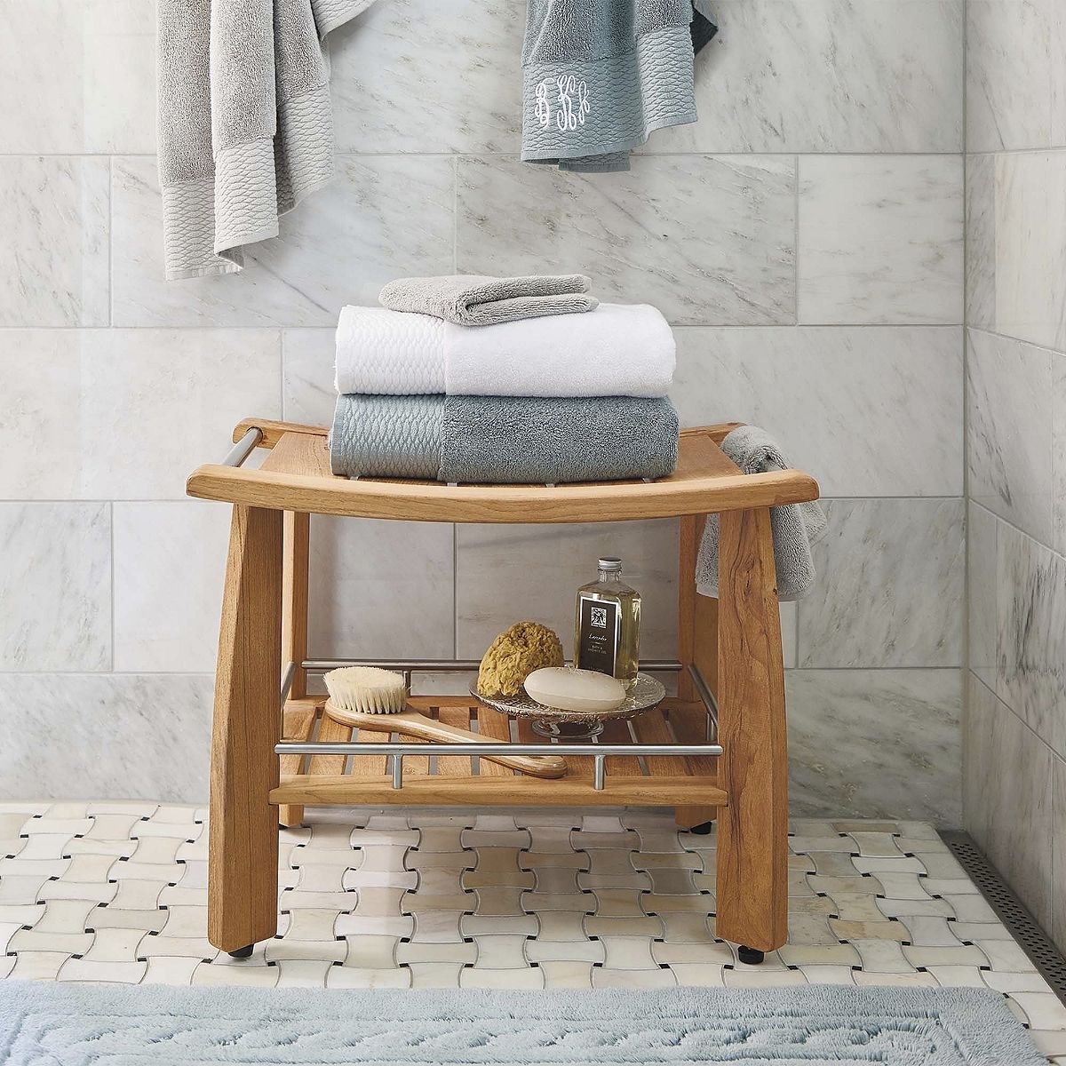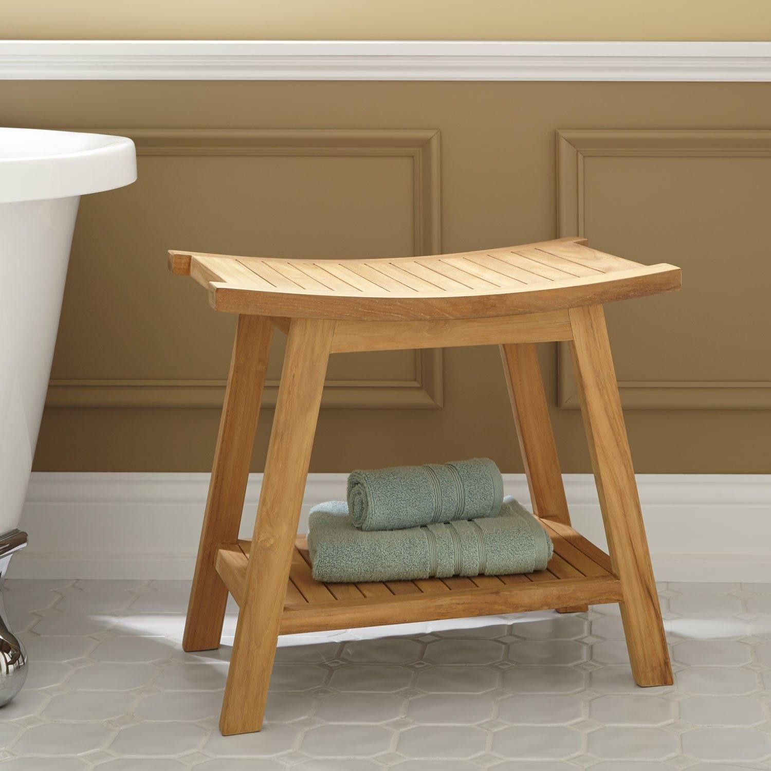 Деревянная скамейка в ванную