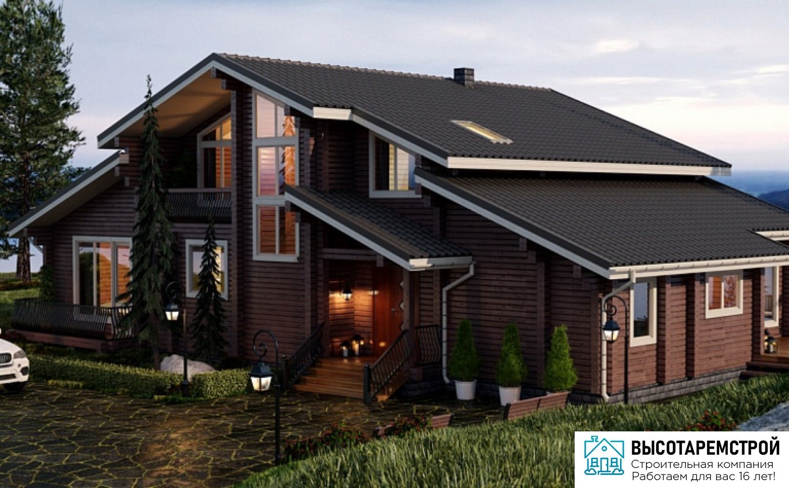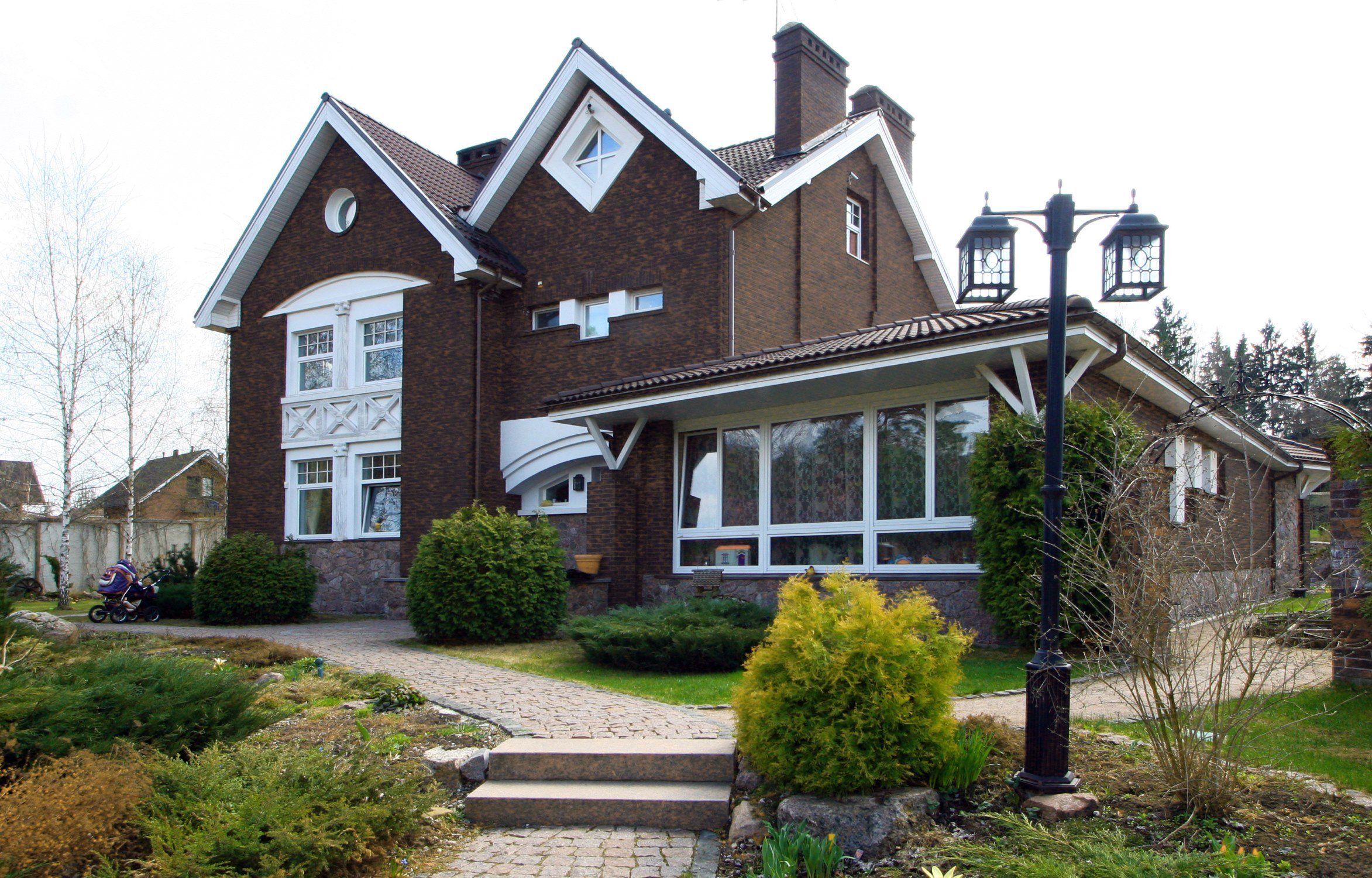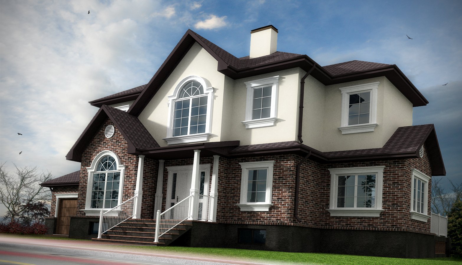 Дом коричневый с белым