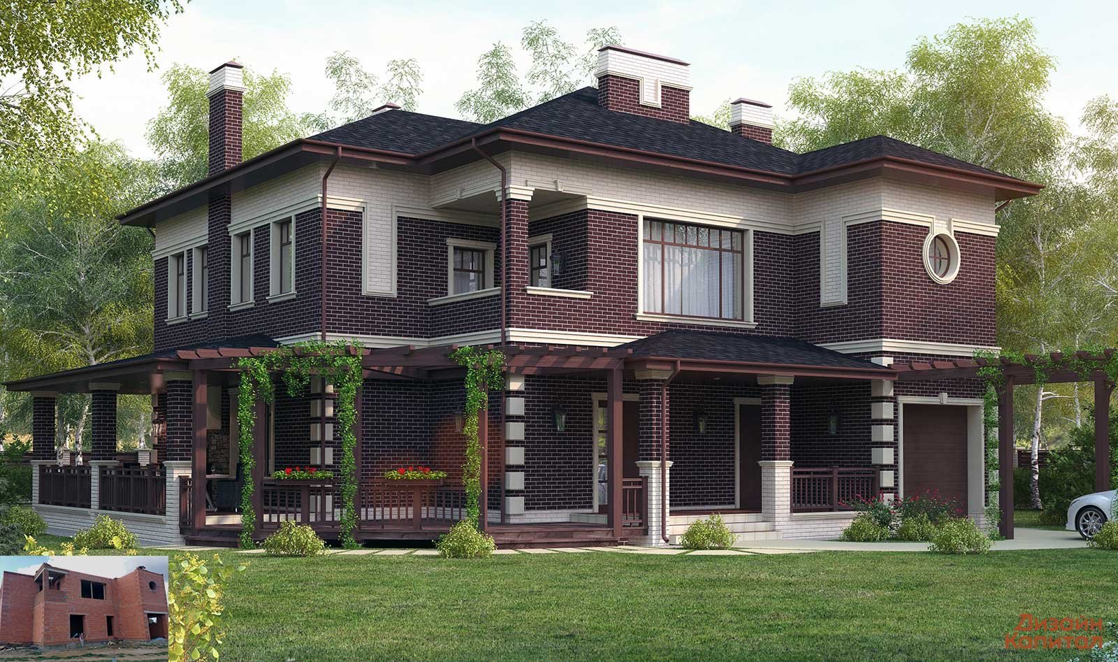 Коттедж из темного кирпича