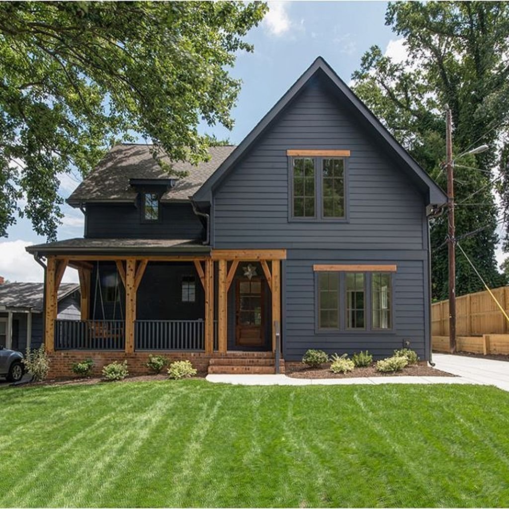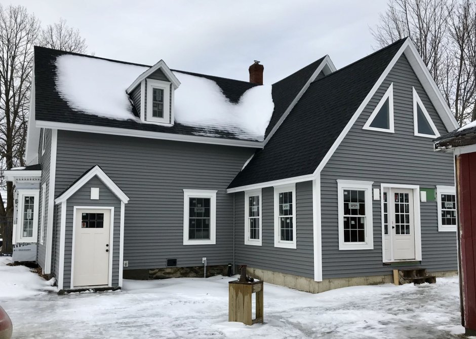 Серый дом с белыми окнами