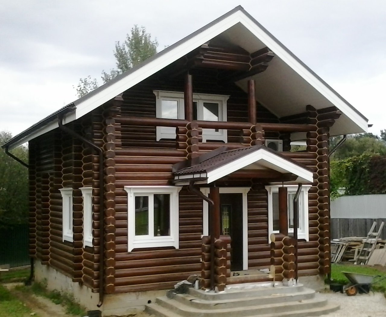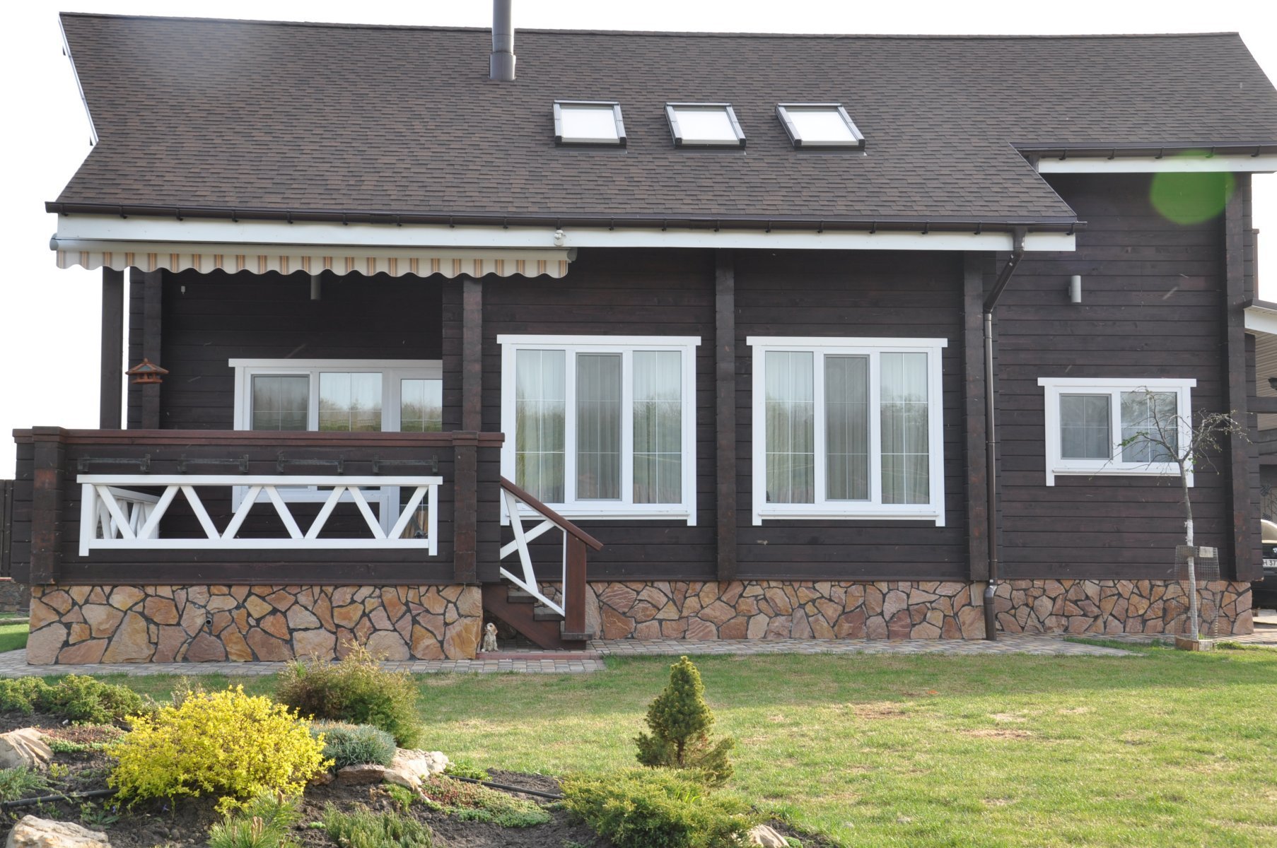 Коричневый дом с белыми окнами