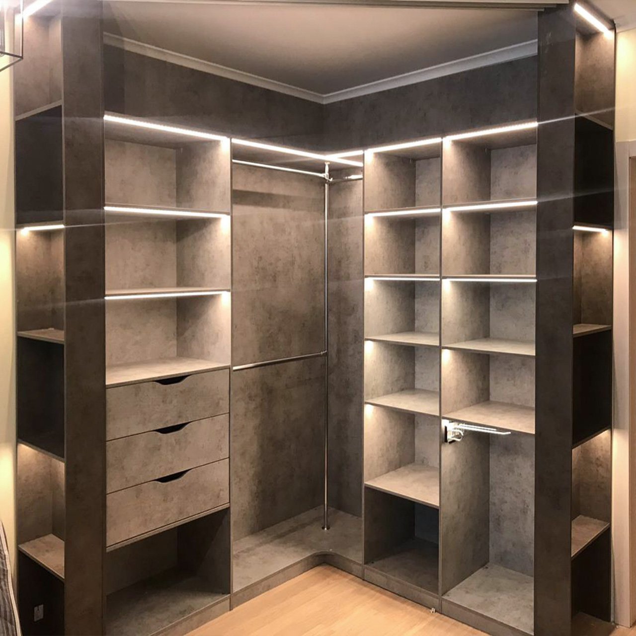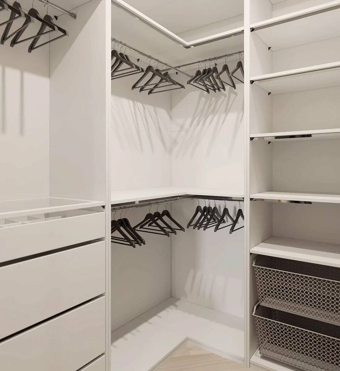 Угловые полки в гардеробной