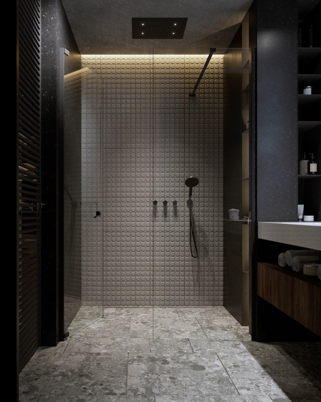 Душевая комната в черном цвете