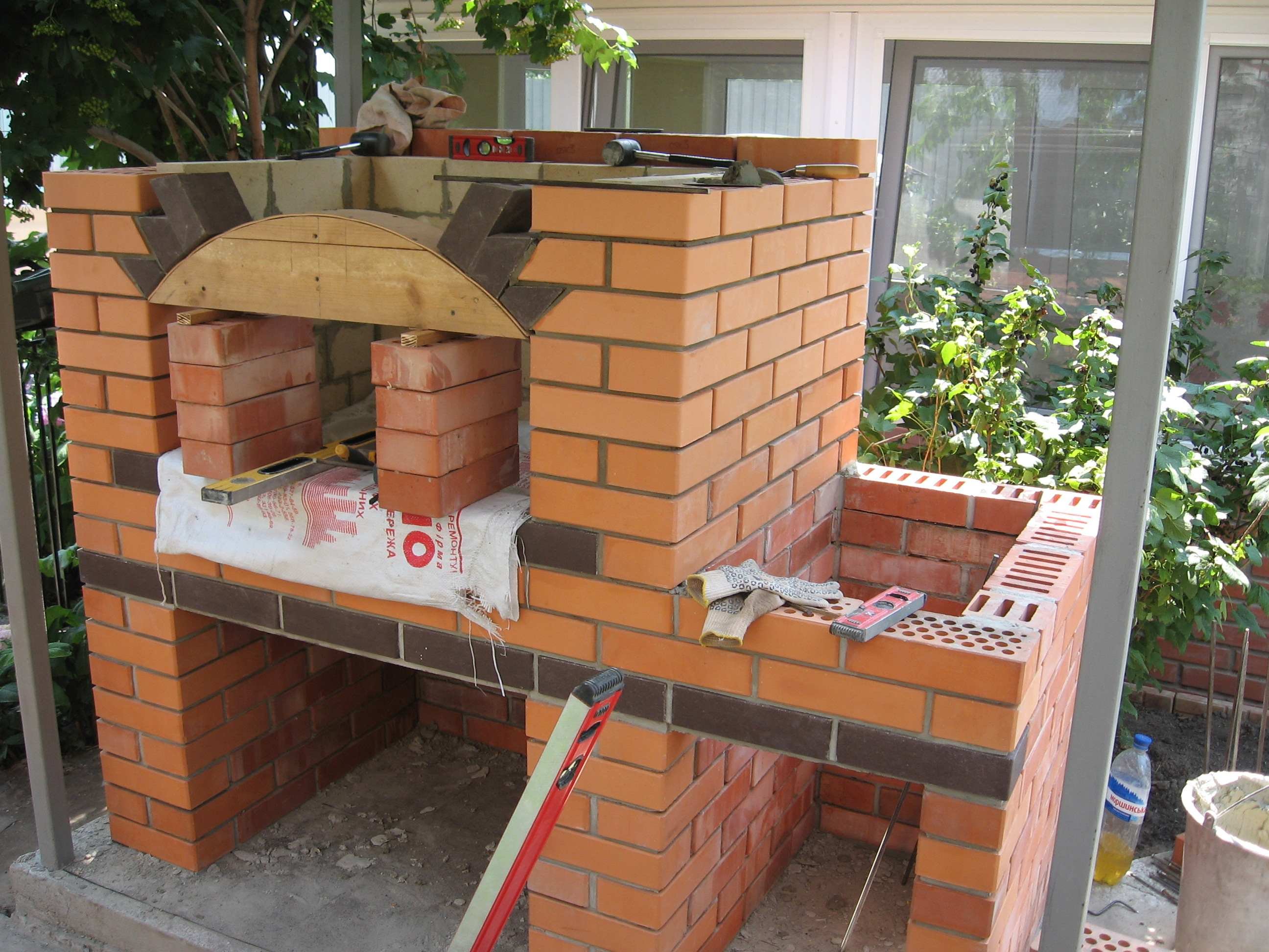 Порядовка камина барбекю из кирпича